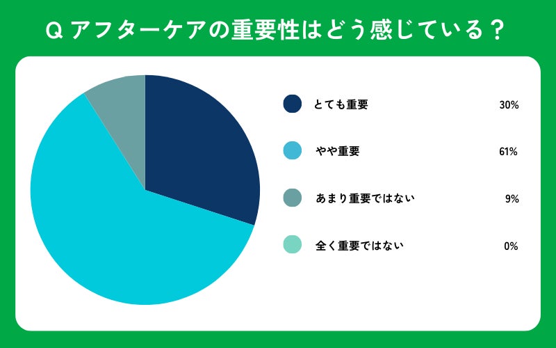 エアコンクリーニングのアフターケアについて9割が重要と捉えており、3割は「とても重要」だとより強く認識している。