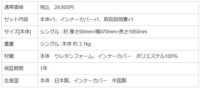 ※1 マットレス本体抗菌仕様/JIS K 6400-9 「軟質発泡材料-第9部:抗菌効果の求め方」による自社試験の結果 ※2 マットレス本体のみ防カビ仕様/JIS Z 2911「かび抵抗性試験方法」による自社試験の結果/全てのカビを防ぐものではありません ※3 マットレス本体防ダニ仕様/JIS L 1920「繊維製品の防ダニ性能試験方法」を準用した自社試験の結果/標準綿布と比較する自社基準に適合 ※4 本体のみ
