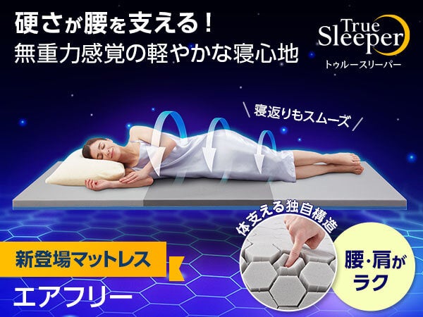 しっかりした弾力性と、程よいフィット感を併せ持つ独自構造。優れた体圧分散性を実現し、腰・肩の負担を軽減。寝返りしやすく、無理のない寝姿勢もサポート!快眠にいざなう未体験の寝心地で、朝まで快眠を叶えます。