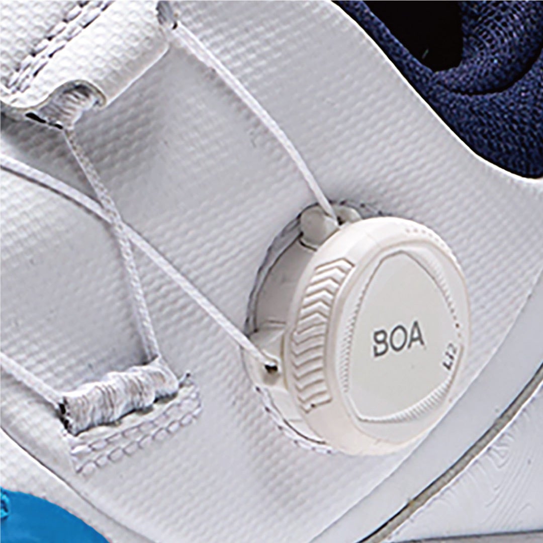 人間工学に基づき考えられたアッパー構造と、BOAフィットシステムでスイング時によりフィットする。