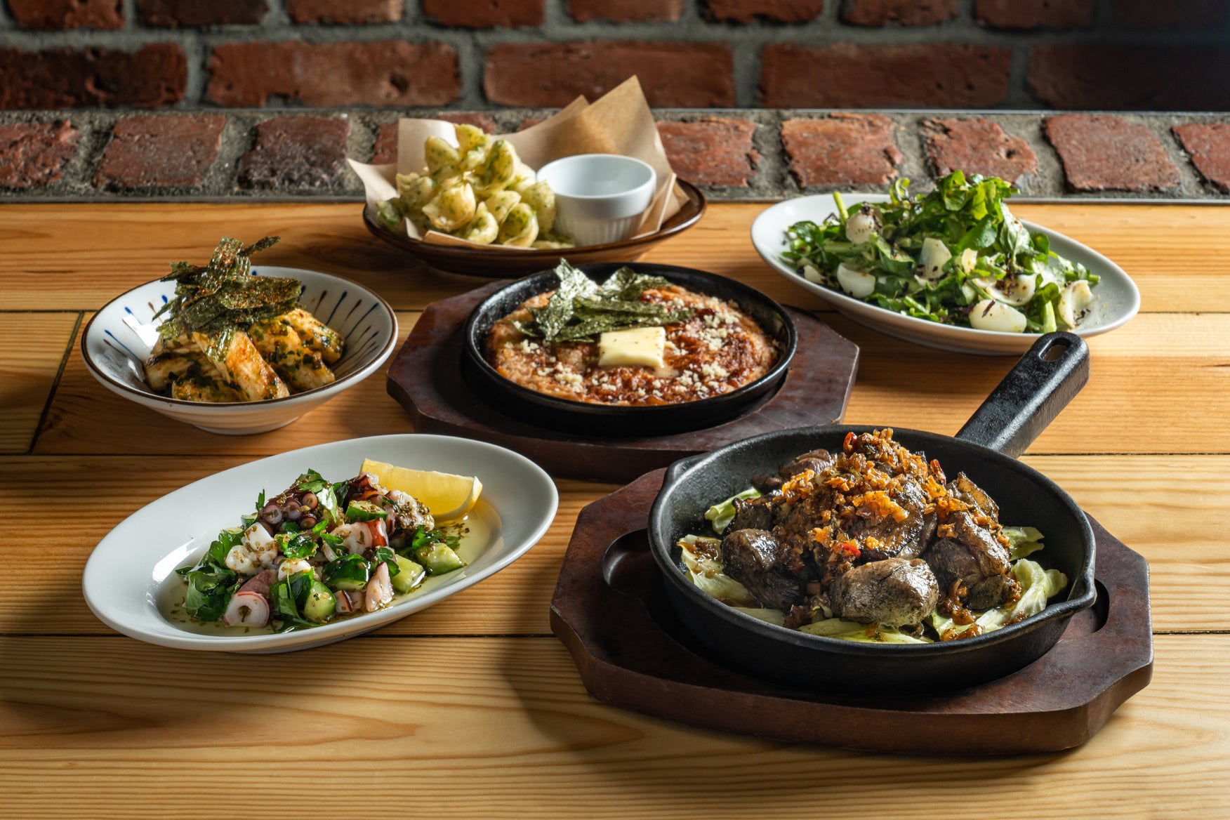 熱々のスキレットの上、脂とソースでおいしく焼けていく甘やかな春キャベツと一緒にお楽しみください。
