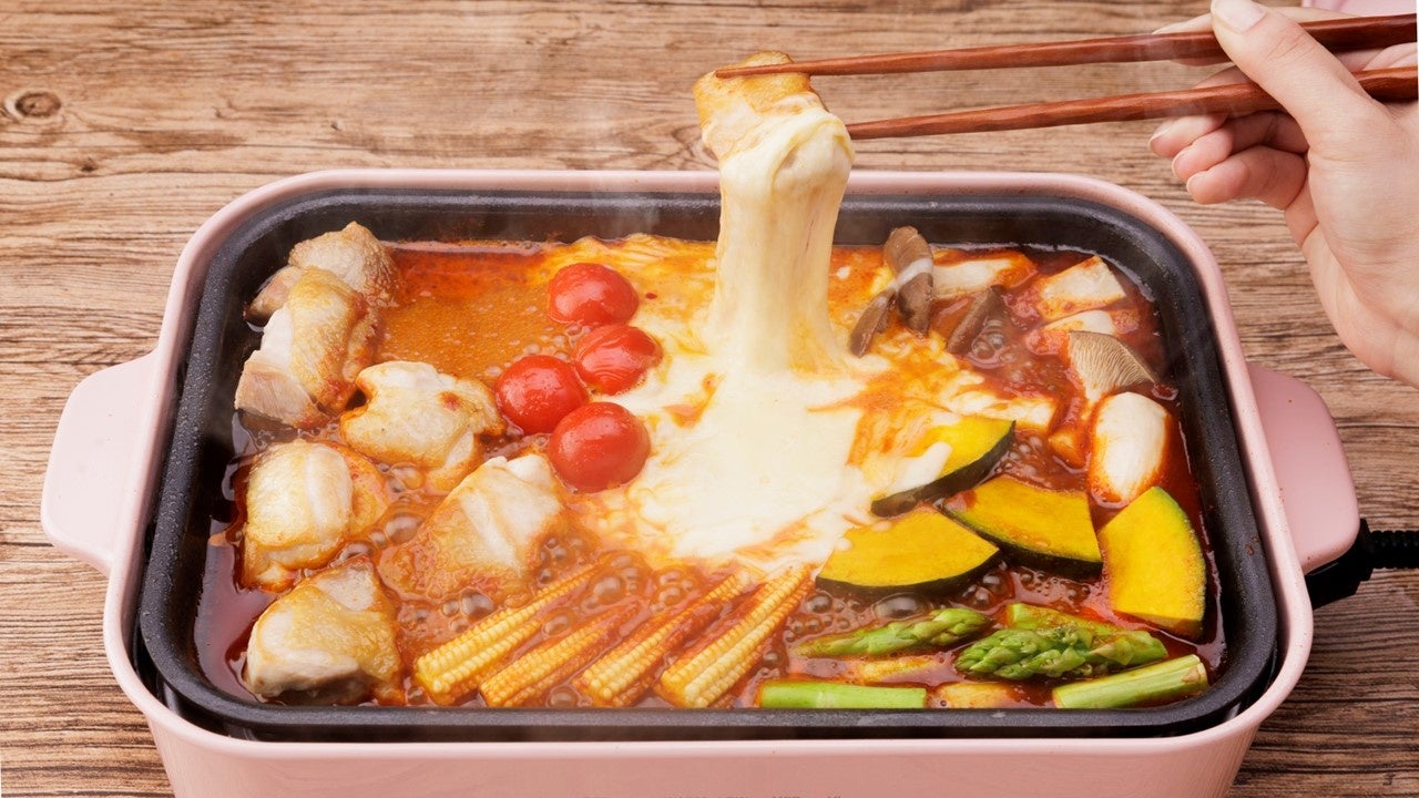 パーティーに笑顔が溢れる、チーズタッカルビ。 ホットプレートを使うと、とてもお⼿軽にできます。
