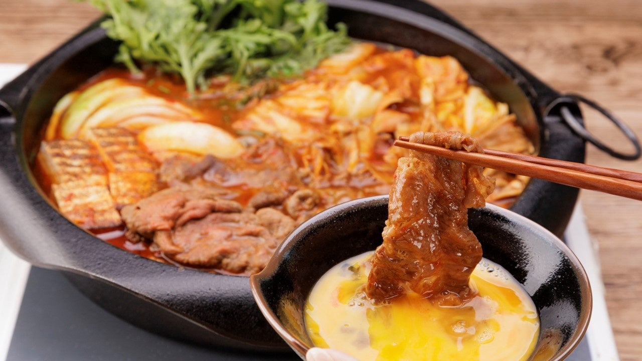 「ジャン チゲの生だれ」のスパイスの香りを活かしたすき焼は、家族の鍋パにピッタリです。生卵の代わりにヨーグルトにくぐらせてもおいしく召しあがれます。