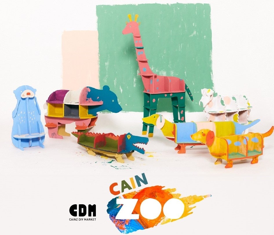 「CAINZOO」は、従来の組み立て家具とは異なり、組み立てて終わりではなく、木材を磨いて自分好みの手触りにしたり、好きな色に塗装して既製品にはないオリジナルカラーにしたりと自分好みにDIYのアレンジをして仕上げるオーダーカット家具です。新しい家具の形を提案するサービス「CAINZ DIY MARKET」で提供しています。子どもたちにDIYを通じてくらしをつくる楽しみを知ってもらいたいと考え、親しみやすい動物たちをモチーフにしたデザインを採用しました。
