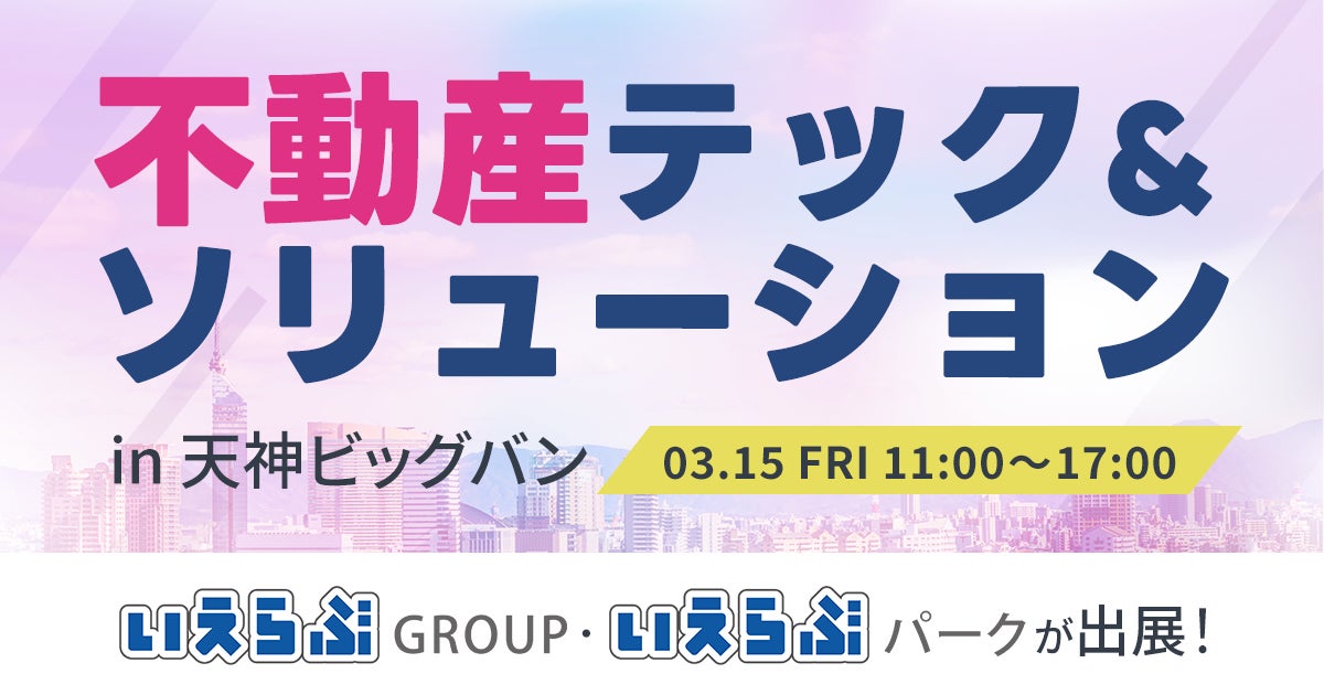 2024年3月15日(金)に開催される第2回「不動産テック&ソリューション in 天神ビッグバン」に、株式会社いえらぶGROUP(本社:東京都新宿区、代表者:岩名泰介、以下「いえらぶGROUP」)、子会社の株式会社いえらぶパーク(本社:東京都新宿区、代表取締役:川口真弘、以下「いえらぶパーク」)が出展することをお知らせします。