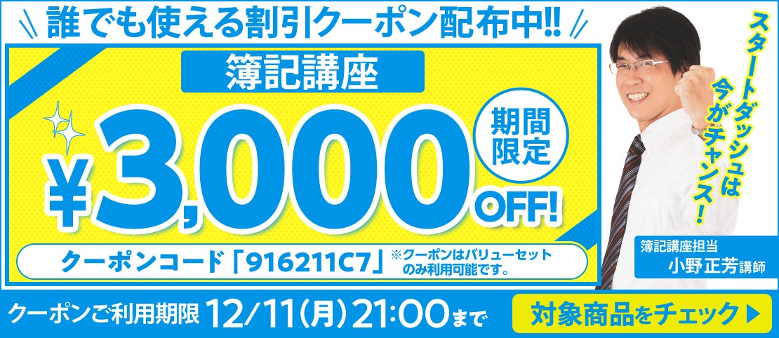 【期間限定】簿記講座 誰でも使えるクーポン 配布中!