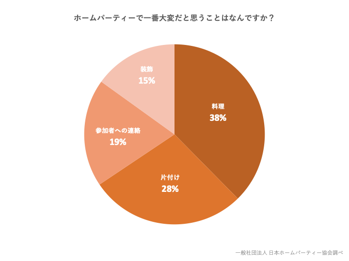 料理 38% 片付け28% 参加者への連絡19% 装飾15%。2023年11月調べ。