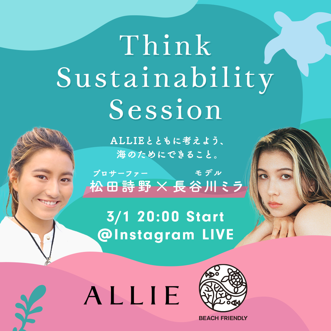 1回目は、本日3月1日(火)20時から開始。キックオフとして、Think Sustainability Actionアンバサダーの松田詩野さんと、Z世代のSDGsリーダーとしてご活躍されているモデルの長谷川ミラさんをゲストにお招きし、アリィーのビーチフレンドリー処方やハワイでの活動などについて対談していただきます。