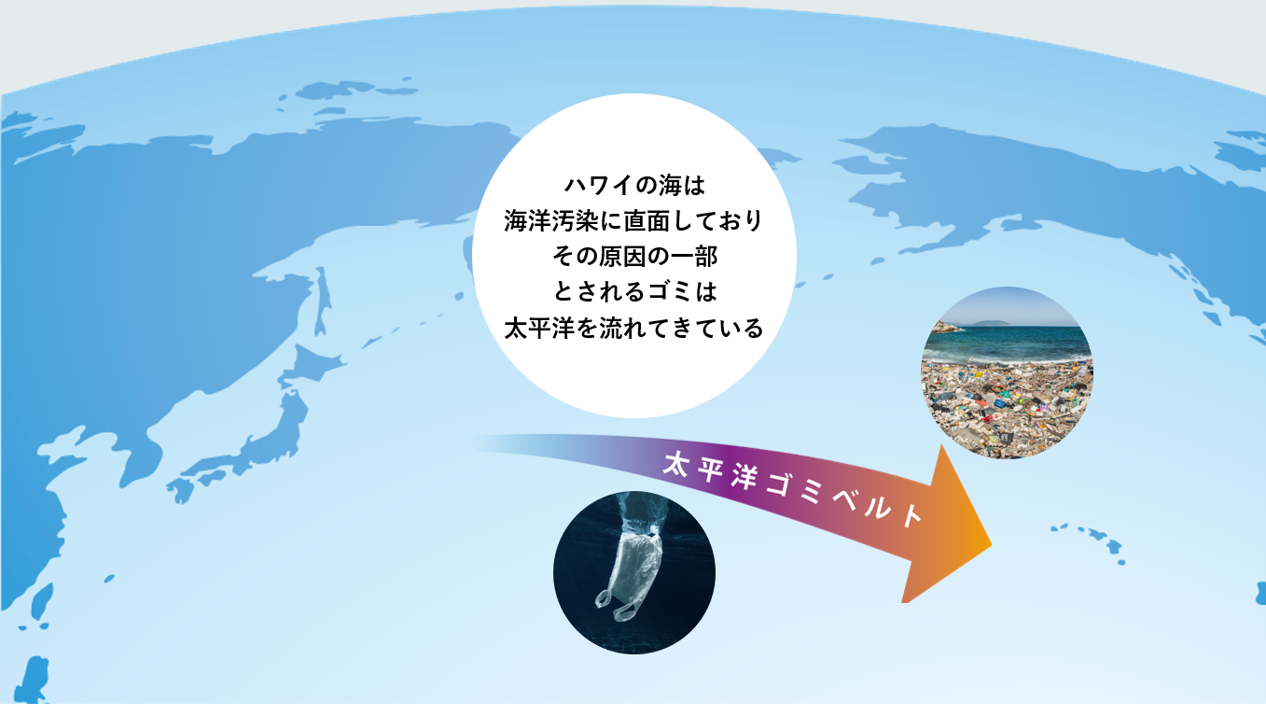 アリィーは、海洋汚染問題により、ハワイでは多くの海洋生物が絶滅の危機に瀕しているという状況に着目しました。そこに大きく影響している原因の一つに、「太平洋ごみベルト」と呼ばれる海流に乗って、ハワイの海へ漂着している多くの海洋ごみがあります。