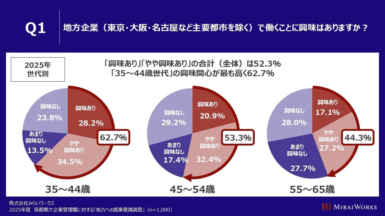 ~地方企業への就業興味は高水準で推移、特に35~44歳世代は62.7%と最も高い関心~