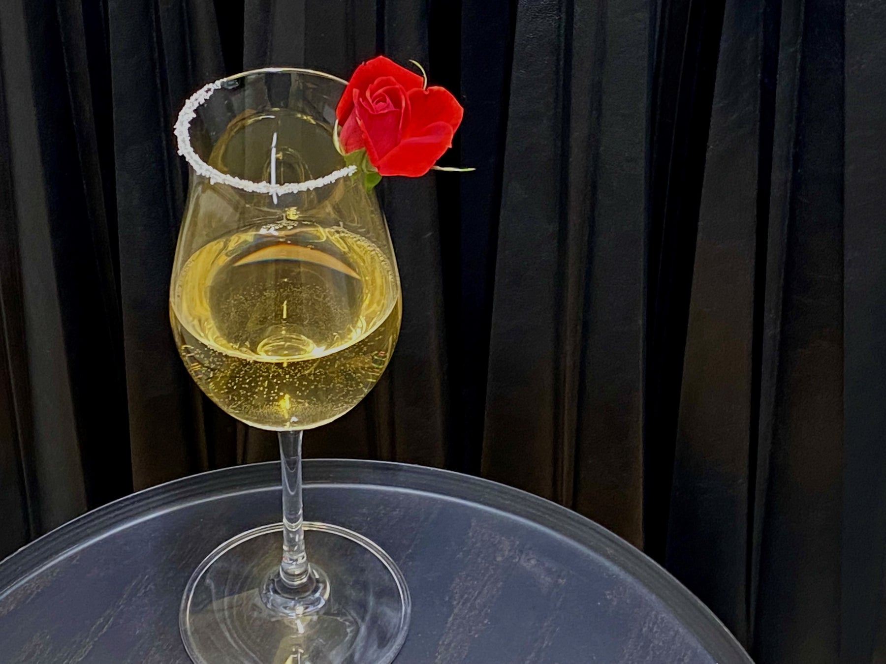 「Cinq(サンク)」とは、フランス語で「5」を意味し、「5周年」と「Thank」という感謝の気持ちを表現しました。オリジナルブレンドした紅茶をベースとし、香り高いエルダーフラワーのリキュールにバラの香りも添えたカクテルです。地域の皆さまへの感謝の気持ちを一輪のバラに込め、花束にしたためた様子を表現しています。