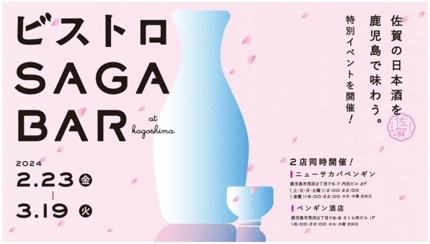 現在、このプロモーションの一環として、九州3県を巡回しながら各地の飲食店とコラボする「佐賀酒“体感”空間SAGA BAR」を展開しており、第1弾の熊本県、第2弾の福岡県に続き、第3弾となる今回は、鹿児島県での開催が実現しました。