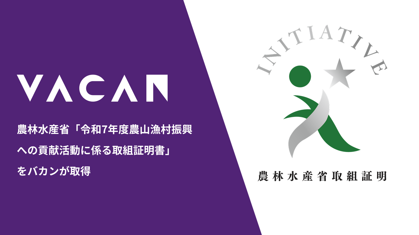 農林水産省「令和7年度農山漁村振興への貢献活動に係る取組証明書」をバカンが取得
