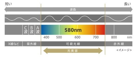 継続して使用することによりムダ毛が目立ちにくくなることで美肌を目指すことに加えて、「レイボーテ」に採用しているIPLの光領域は、肌に良い影響を与える可視光線の中でも580nm付近の波長を含み、刺激になりやすい領域をカットしています。