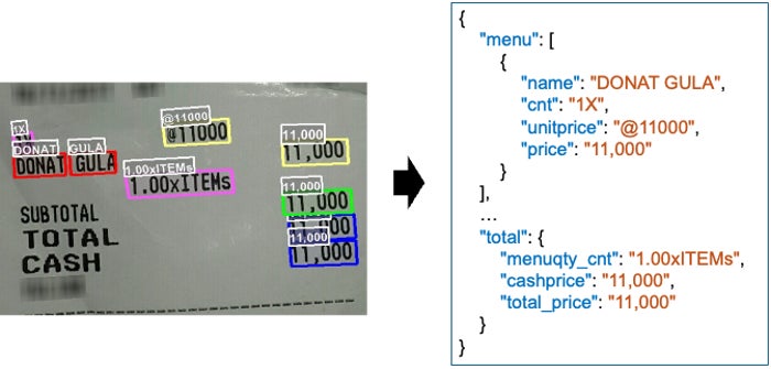 (レシート画像(左)から有用な情報を抽出した結果(右))