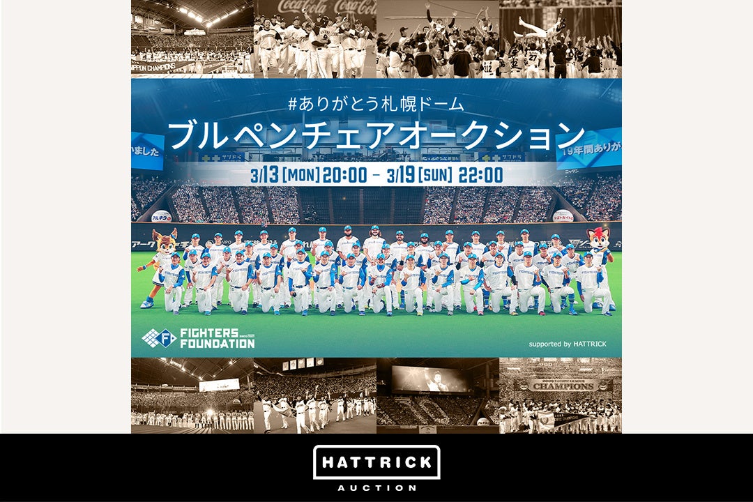 地球、そして私たちのために循環をデザインする「Circular Design for the Earth and Us」をパーパスに掲げ、大切なことにフォーカスして生きる人を増やすことを目指すバリュエンスジャパン株式会社(本社:東京都港区、代表:六車 進、以下 当社)は、当社が運営するスポーツチーム公認オークション「HATTRICK(https://auction.hattrick.world/)」にて、2023年3月13日(月)より北海道日本ハムファイターズによる #ありがとう札幌ドーム ブルペンチェアオークションを開催いたします。