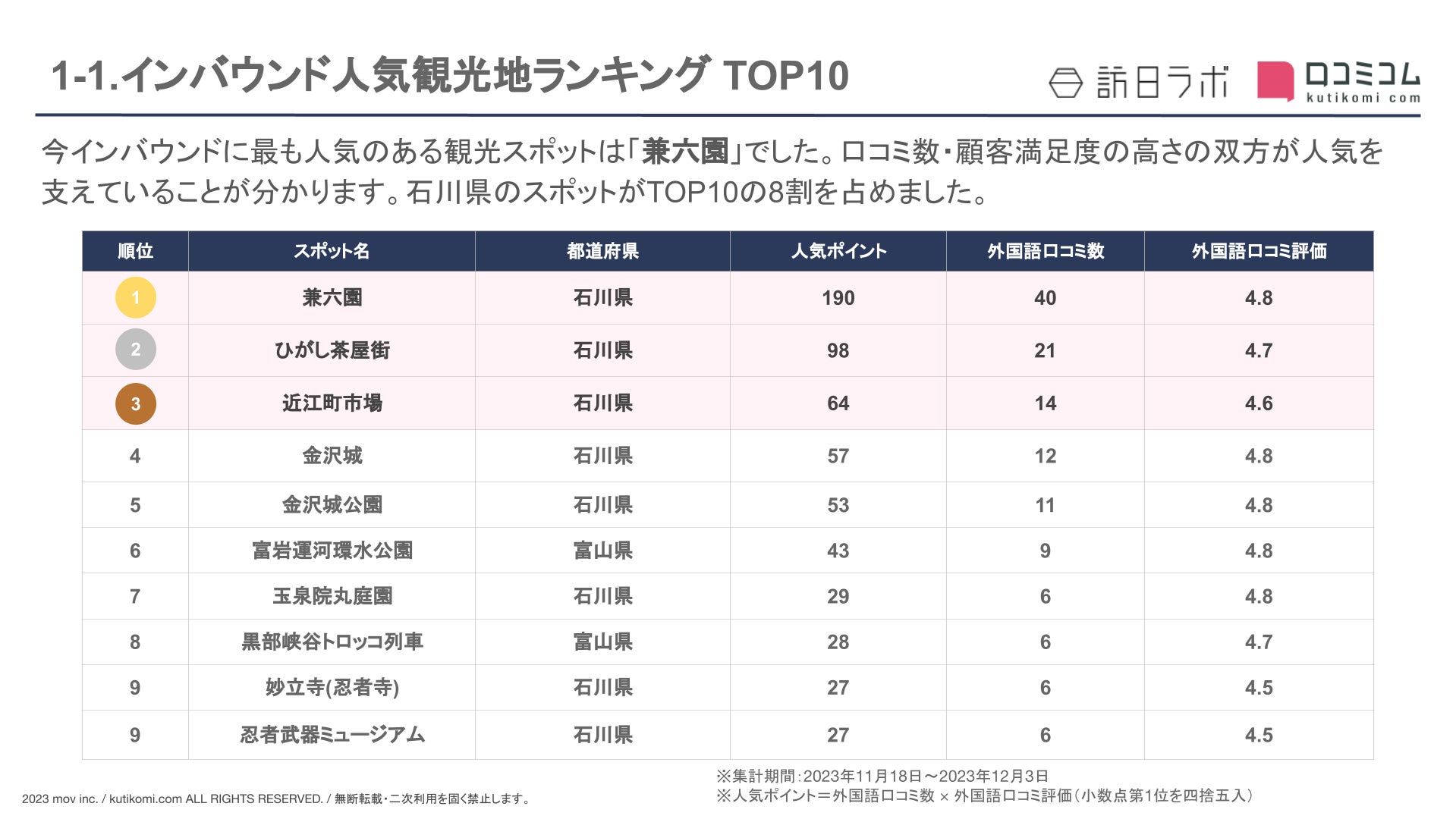 【独自調査】インバウンド人気観光地ランキング北陸編:最新の訪日客の支持を集めたスポットTOP30を発表 #インバウンドMEO