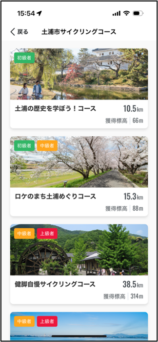 『自転車NAVITIME』アプリ内に、土浦市専用ページを新規開発し、土浦市内のサイクルツーリズムに関するコンテンツや関連リンクなどを集約したポータルサイトを提供します。①の「サイクリストにやさしい宿」検索のほか、サイクリストのための休憩スポットである「サイクルサポートステーション」情報や土浦市内の5つのサイクリングコースを掲載してルート検索から多言語音声ナビへの連携、土浦市の見どころとして観光スポットの表示にも対応しています。