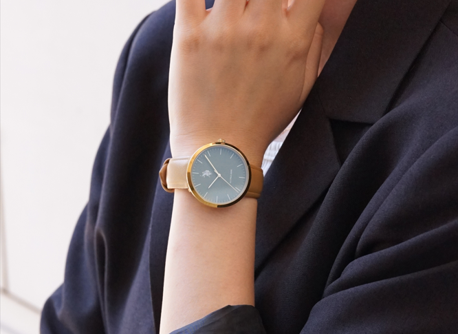 腕馴染みの良いレザーベルトでシンプルなデザインが印象的。様々なファッションにマッチするくすみカラーを文字盤やベルトに使用しています。ケースサイズも36mmとユニセックスに使用できます。