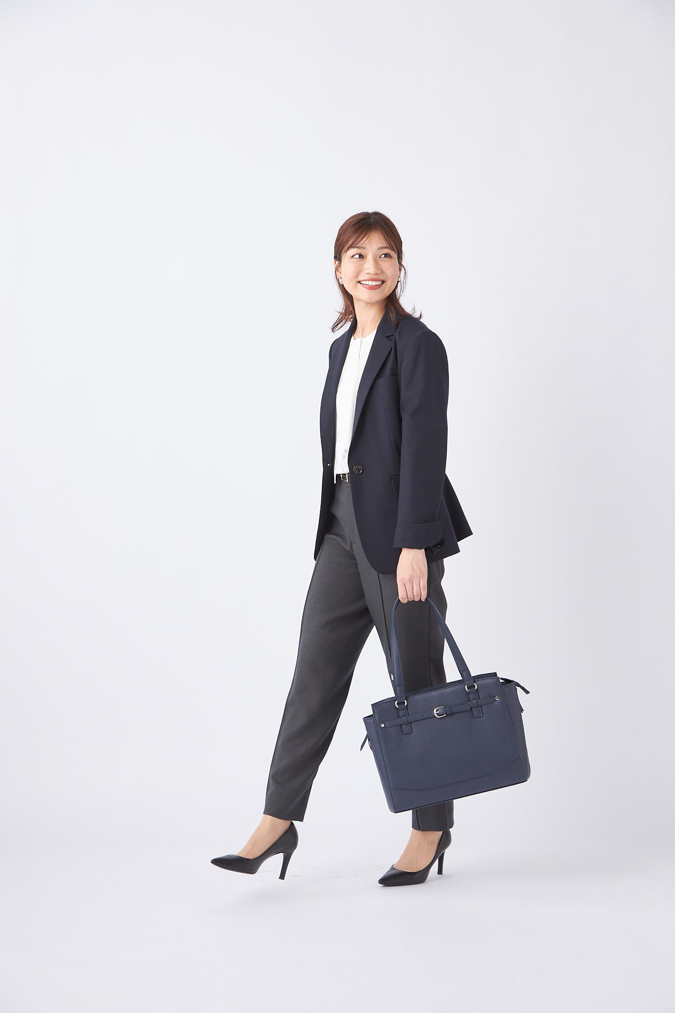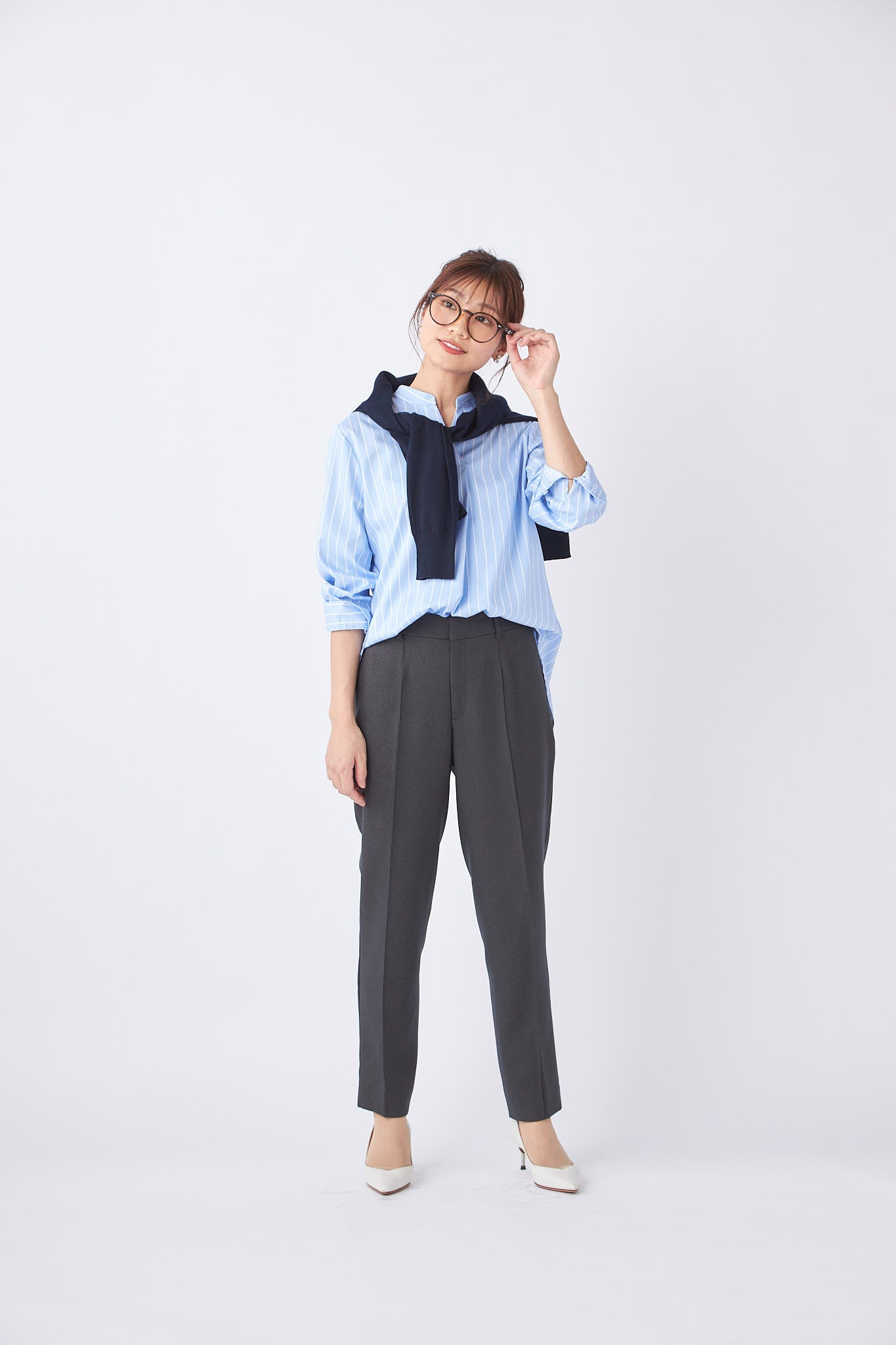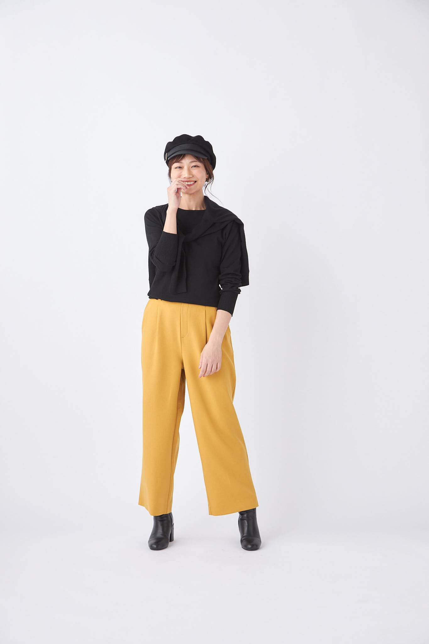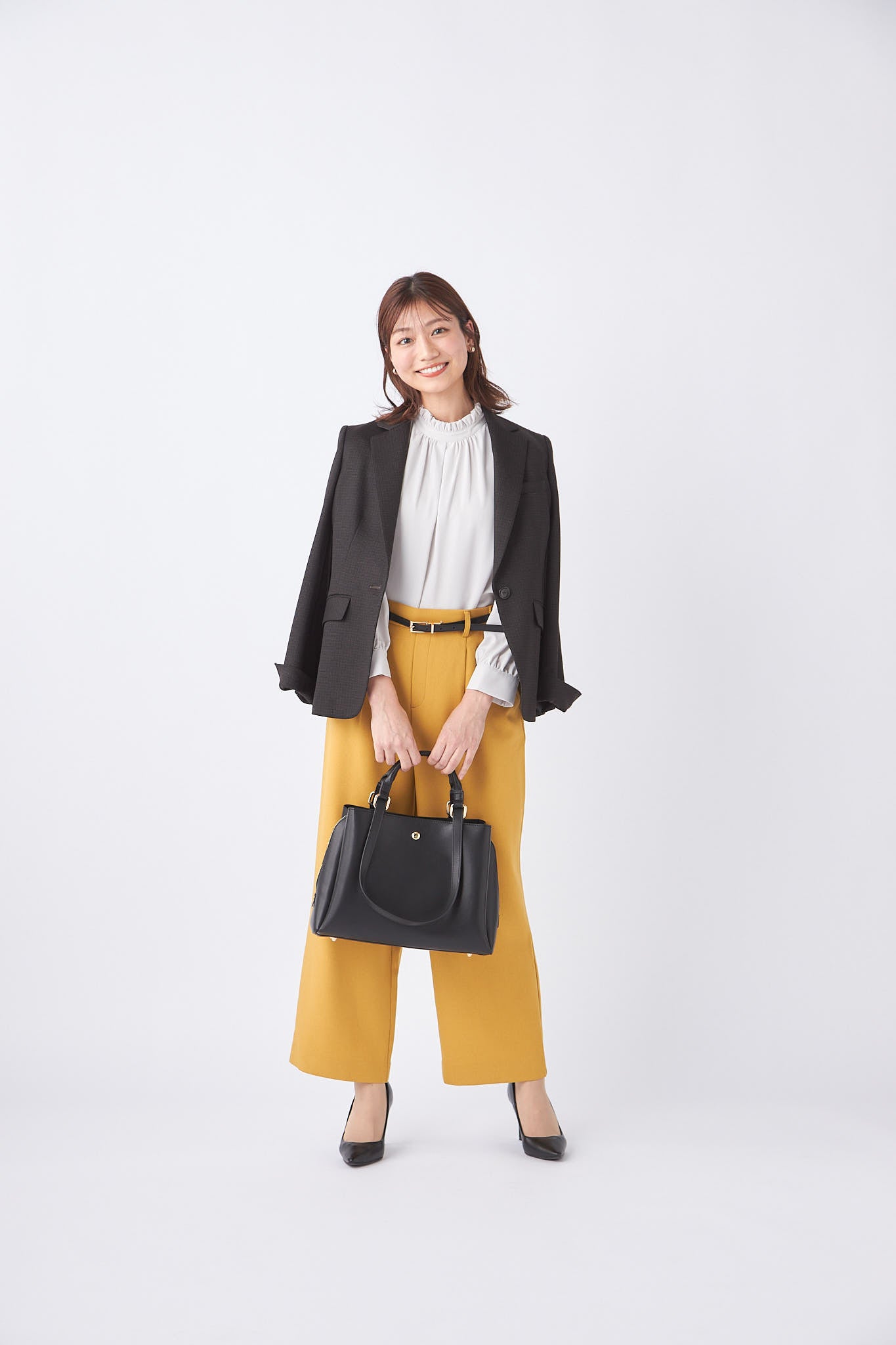 ブラックをはじめとしたネービー、グレーなどの落ち着いたカラーに加えてスタイリングの差し色になるマスタード、ベージュのカラーでご用意。ジャケットオンでオフィスカジュアルスタイルからTシャツやブラウスと合わせたきれいめカジュアルスタイルまで幅広いコーディネートに対応可能なアイテムです。