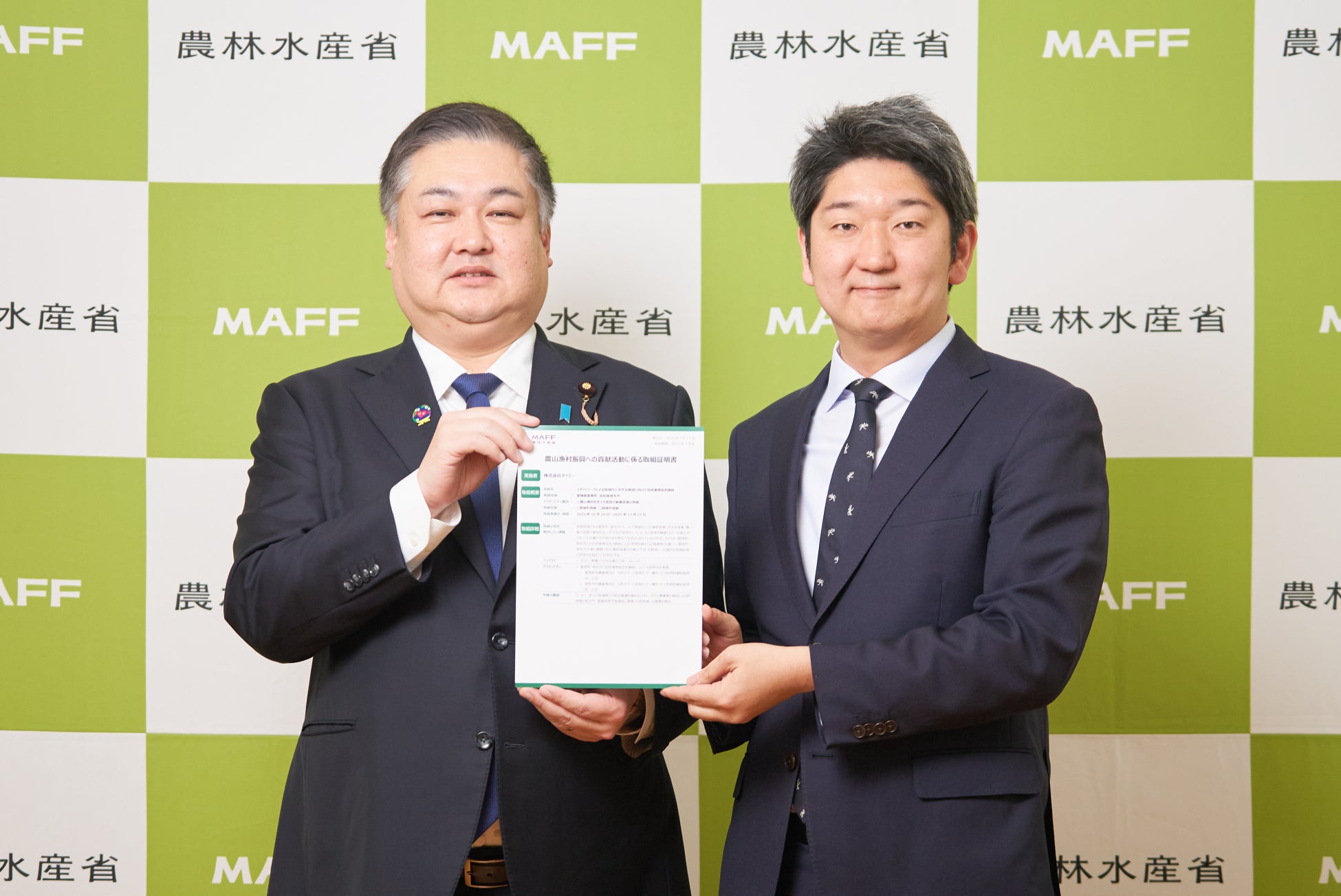 この度は、農林水産省の「取組証明書」を交付いただき、大変光栄に存じます。
