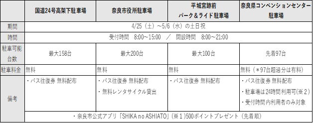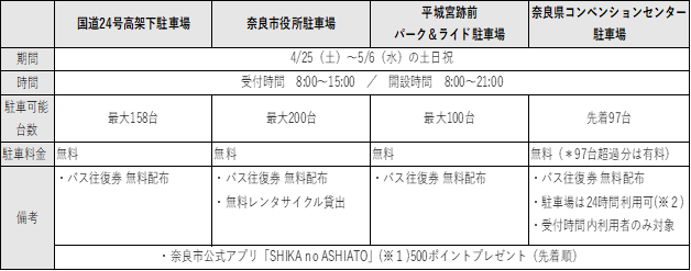 あわせて、今回新たに「奈良県コンベンションセンター駐車場」を無料化し、