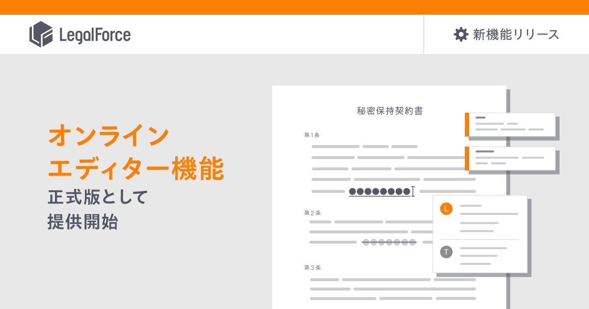 なお「オンラインエディター」機能の正式版は、申し込みや追加料金なく、「LegalForce」をご利用頂くすべての皆様にご利用いただけます。