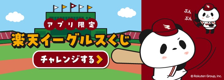 球団公式スマホアプリ限定の 「楽天イーグルスくじ」 にもお買いものパンダが登場します。1日1回チャレンジできるくじに挑戦して、お買いものパンダがヒットを打てばチケットクーポンなど豪華賞品が当たります。