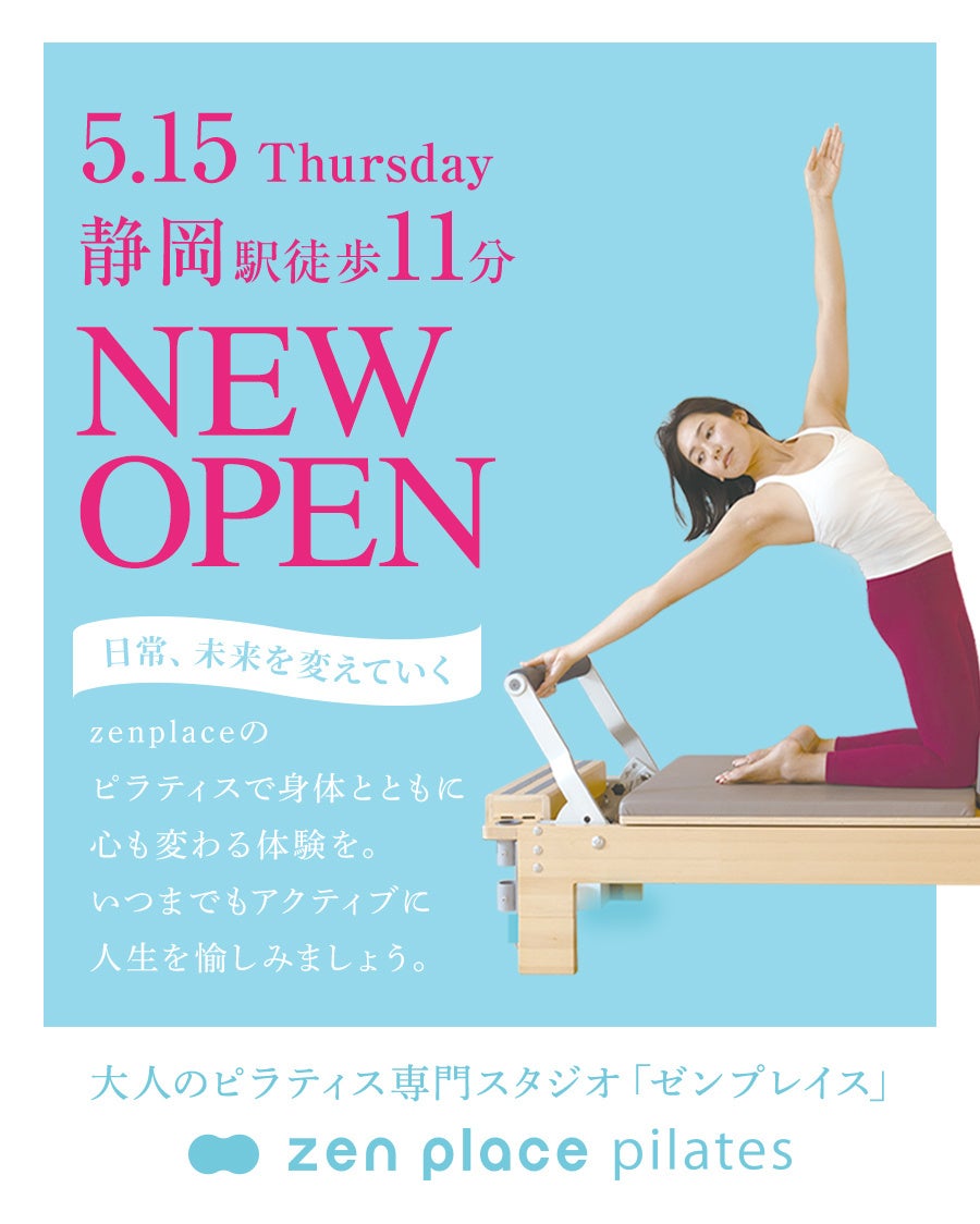 最先端研究結果・科学をもとに、グローバルな環境で最新技術とDXで挑戦を重ね、サービス業界にイノベーションを起こしている最先端のWeb3.0 DX企業であり、ウェルビーイング創造のリーディングカンパニーである株式会社ZEN PLACE(本社:東京都渋谷区 代表取締役:尾崎成彦)は、静岡県内初出店となる最新ピラティス専門スタジオ「zen place pilates 静岡スタジオ」を2025年5月15日(木)にオープンします。