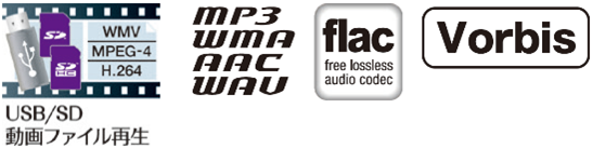 対応USBケーブルの最大供給電流をDC 5V 3Aに向上させ、タブレットの急速充電も可能にしました。また、USBデバイスに収録した音楽や動画を再生できるさまざまなメディアや音楽・動画ファイルも使用できます。