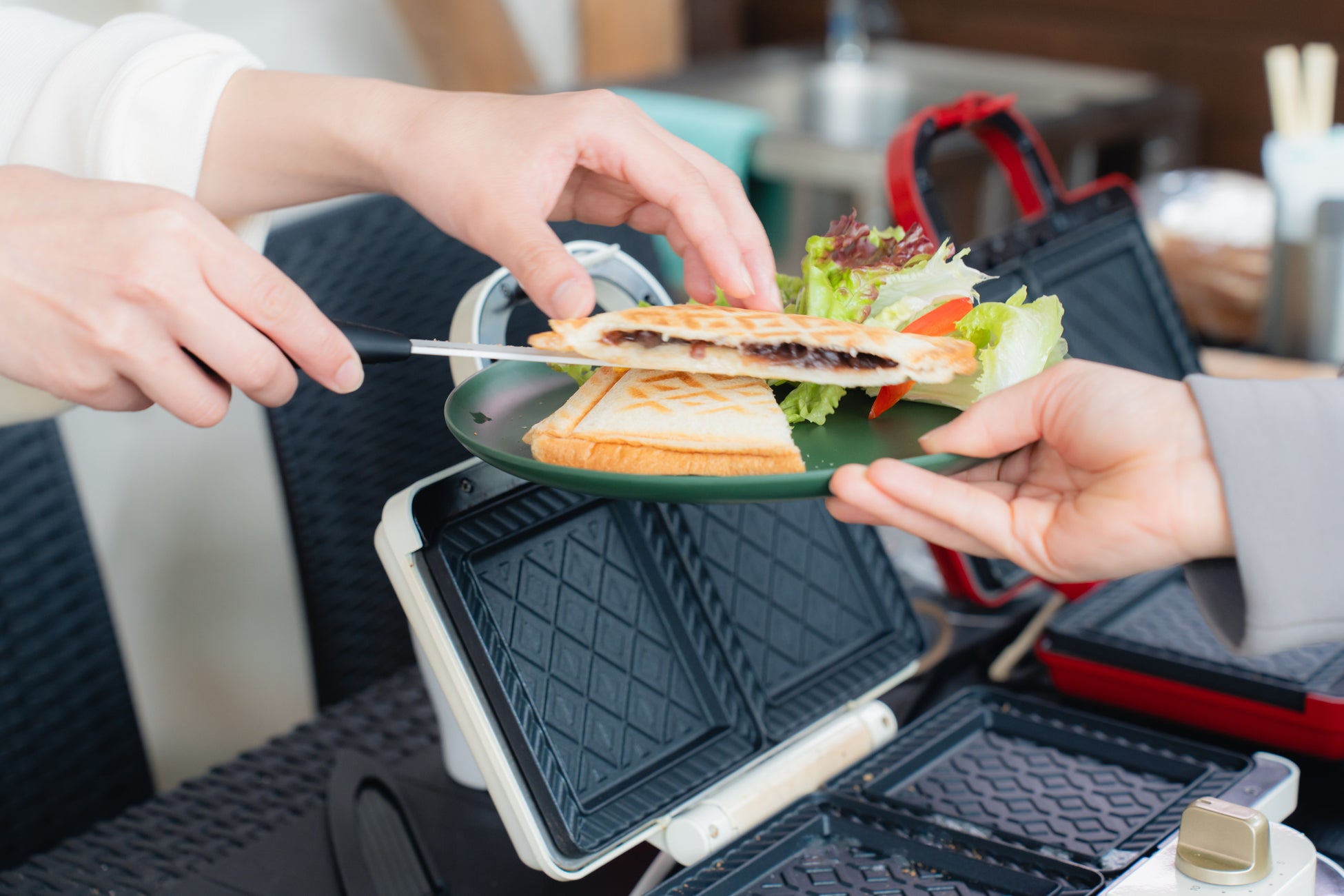 朝食は6種類の具材からお好きな具材を選んで作るホットサンド。
