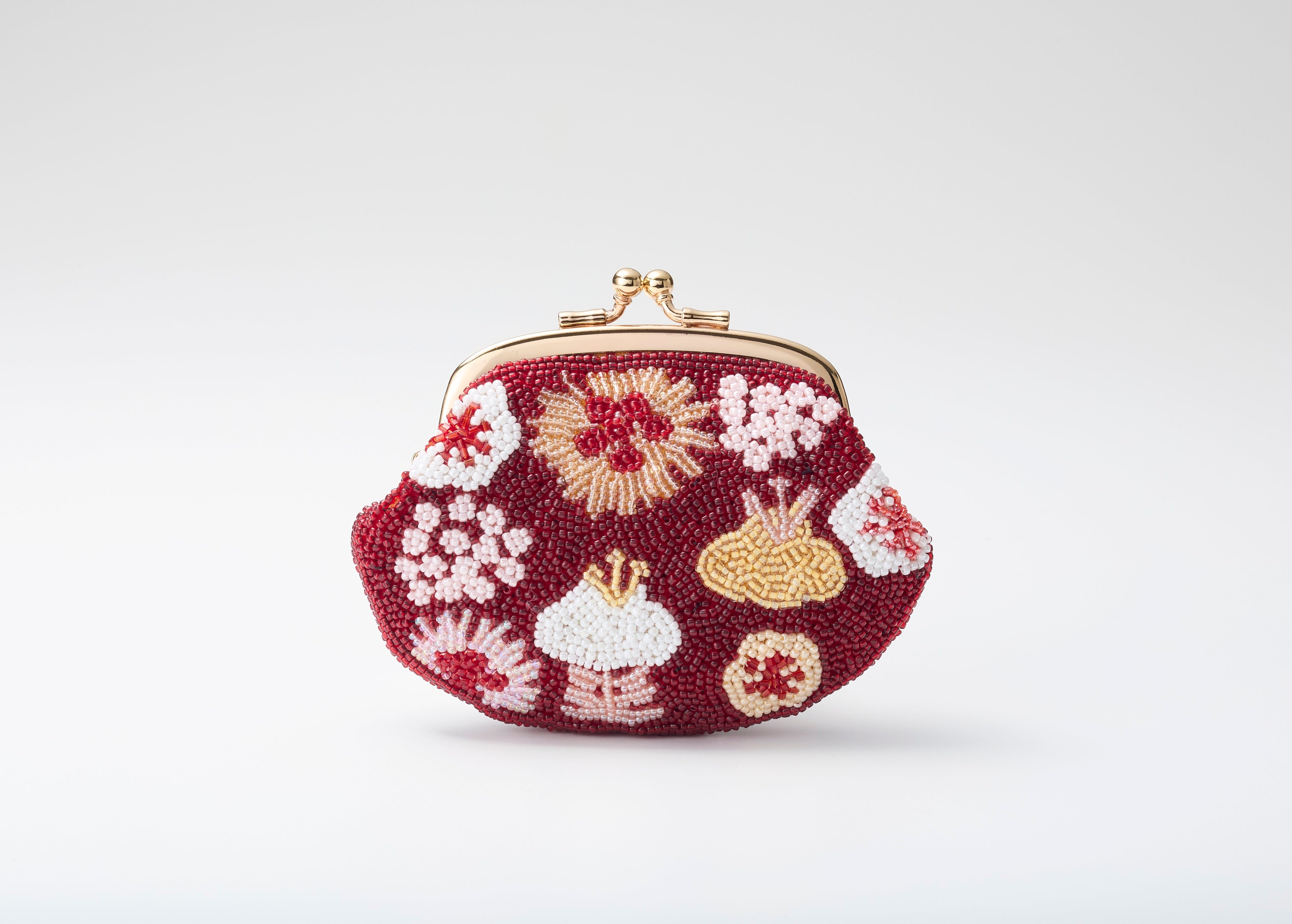 職人が手作業で縫い付ける花モチーフのビーズがま口