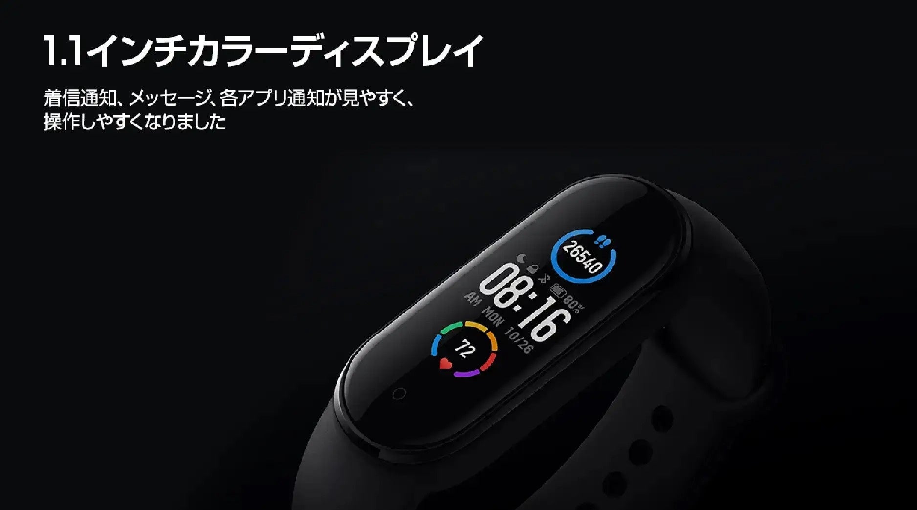 Xiaomiのスマートで見やすい1,1インチフルカラーディスプレイが魅力のMi Band 5