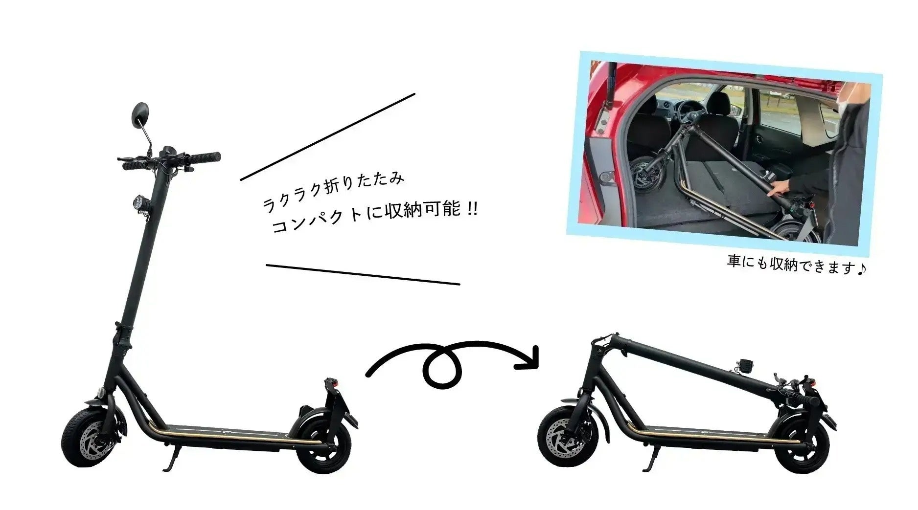 ●付属品:充電アダプター、組立用工具一式、ワイヤーロック