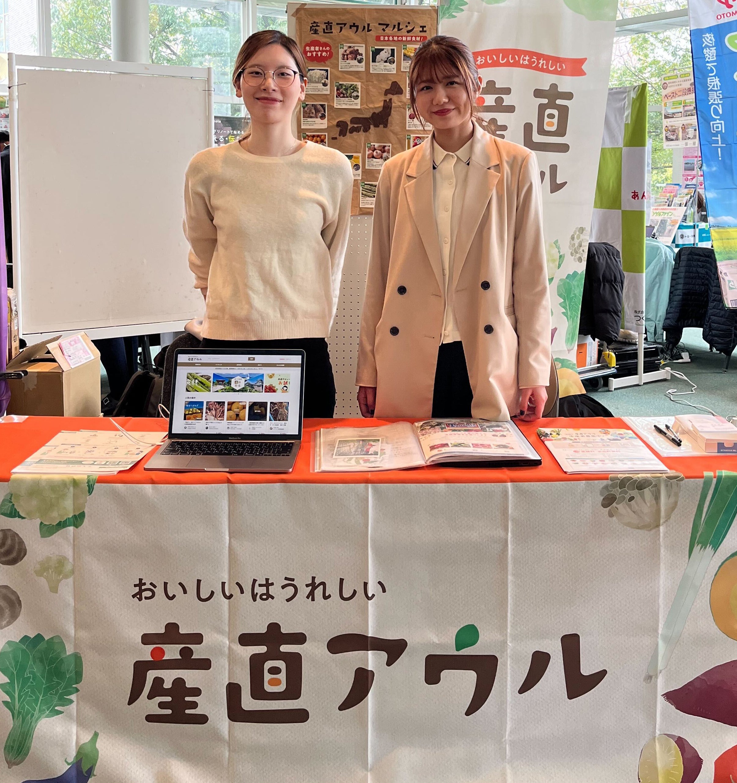 イベント会場で出展したブースでは、産直アウルのサイトを実際にご覧いただけるようPCを用意し、サイト画面を操作しながらサービスの仕組みや出品方法を説明しました。ブースに訪れた農家の方にEC販売について話を聞いたところ「やり方がいまいちわからない」「1人では手が回らない」といった声や、「規格外や訳あり品の販売経路に困る」といった声もあり、スマートフォンのみで自分の販売ページを開設でき最少1品から販売できる手軽さや、産直アウルにおける規格外品販売の成功事例などご説明しました。