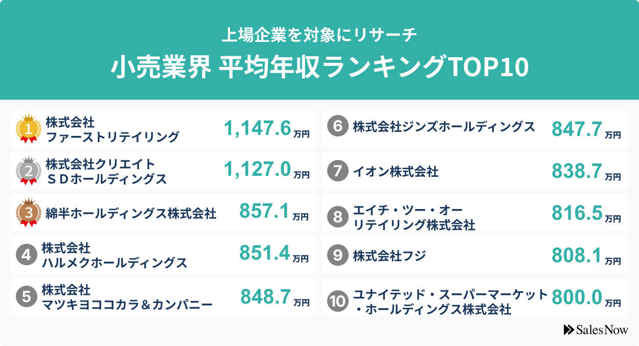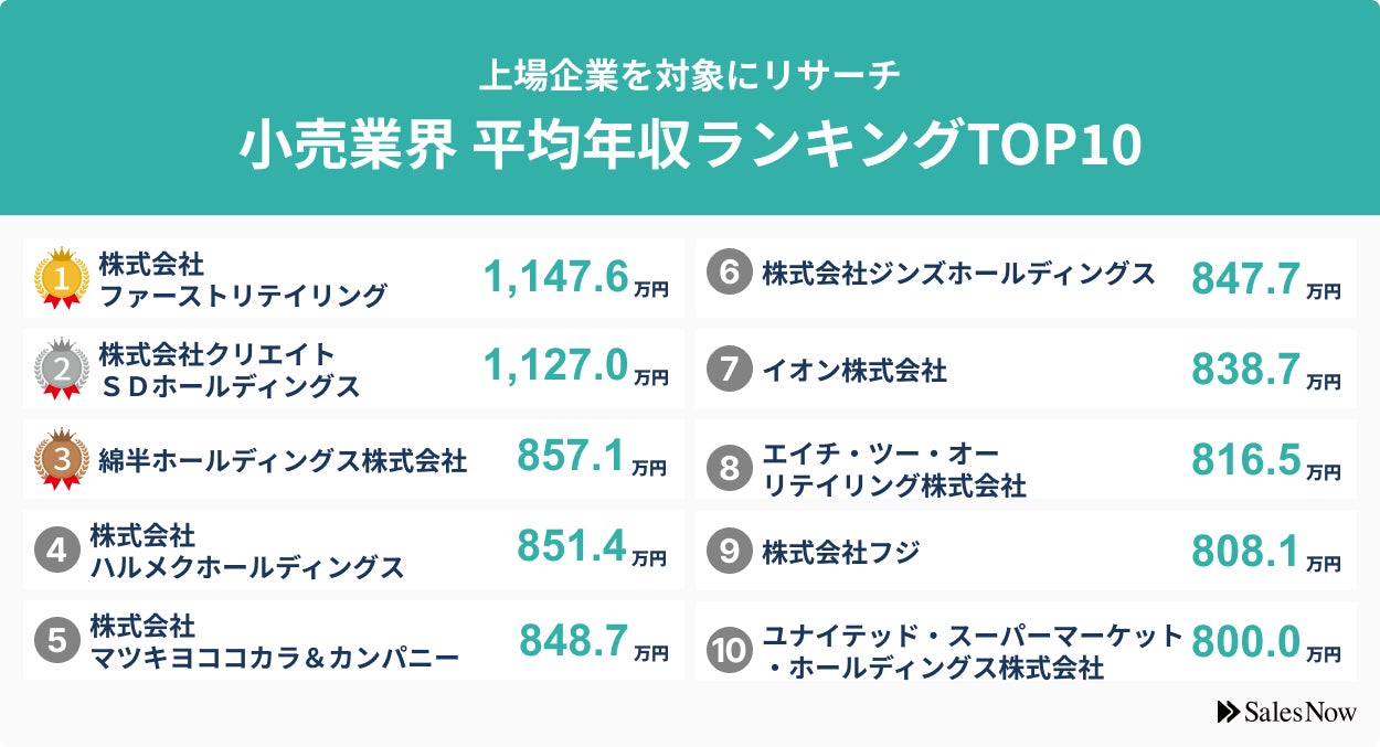 小売業界、平均年収ランキングTOP10を発表!/SalesNow DBレポート