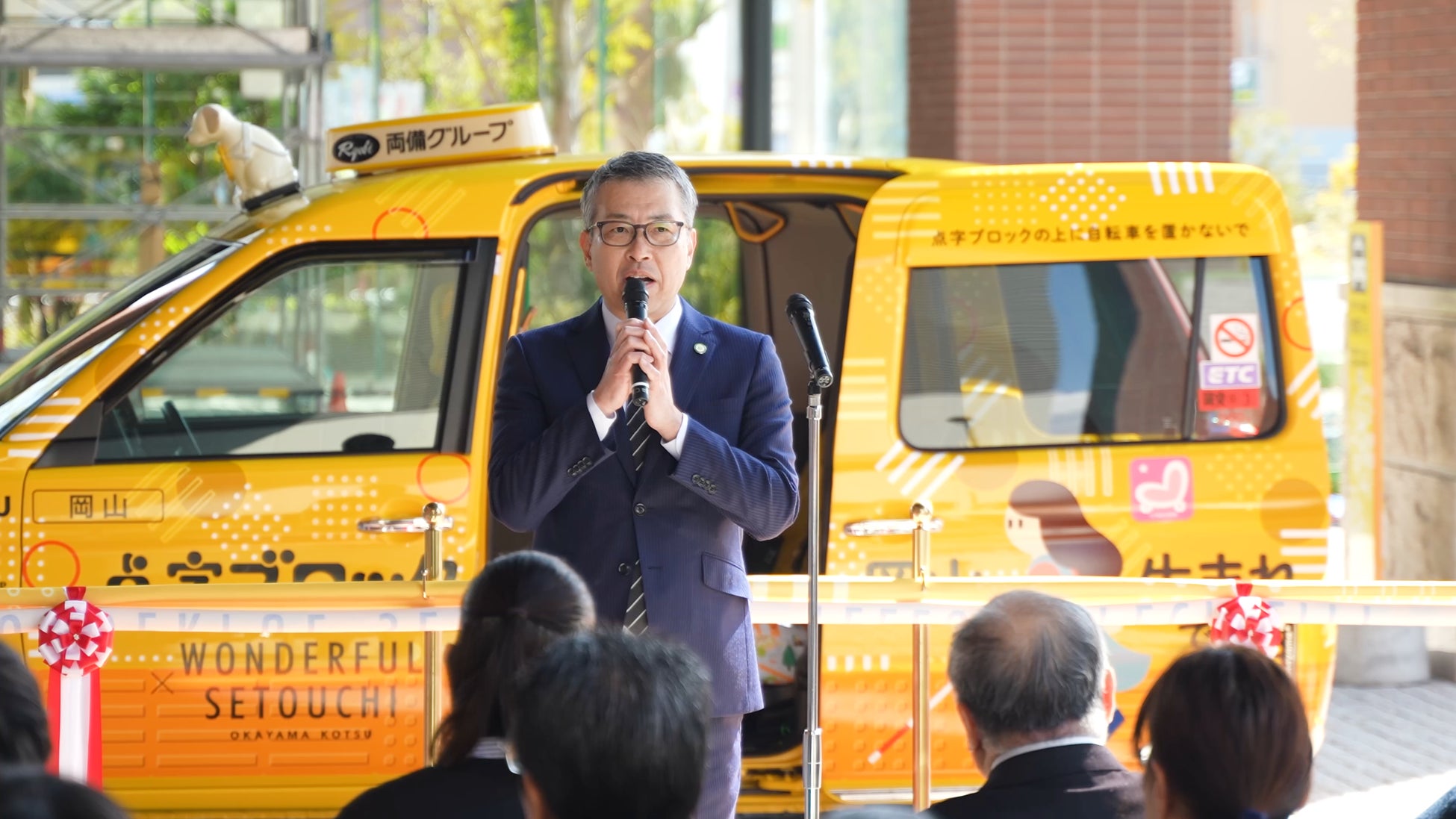 岡山交通では、本タクシーの運行を通じて点字ブロックの啓発活動や新たなサービスの展開を進め、視覚障害者をはじめとするすべての方にとって快適で安心できる移動環境の提供に取り組んでまいります。