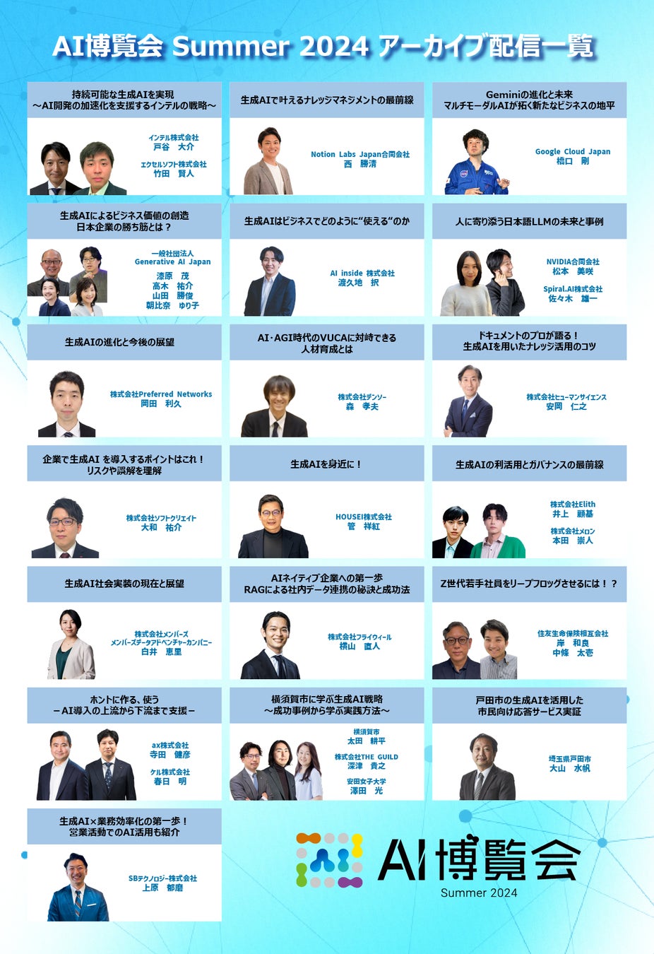 こちらのアーカイブ配信は、AI技術の導入を検討する企業担当者や、最新のAI動向をキャッチアップしたい方、そしてAIの未来に興味を持つすべての方々にとって、見逃せない機会となります。ぜひご視聴ください。