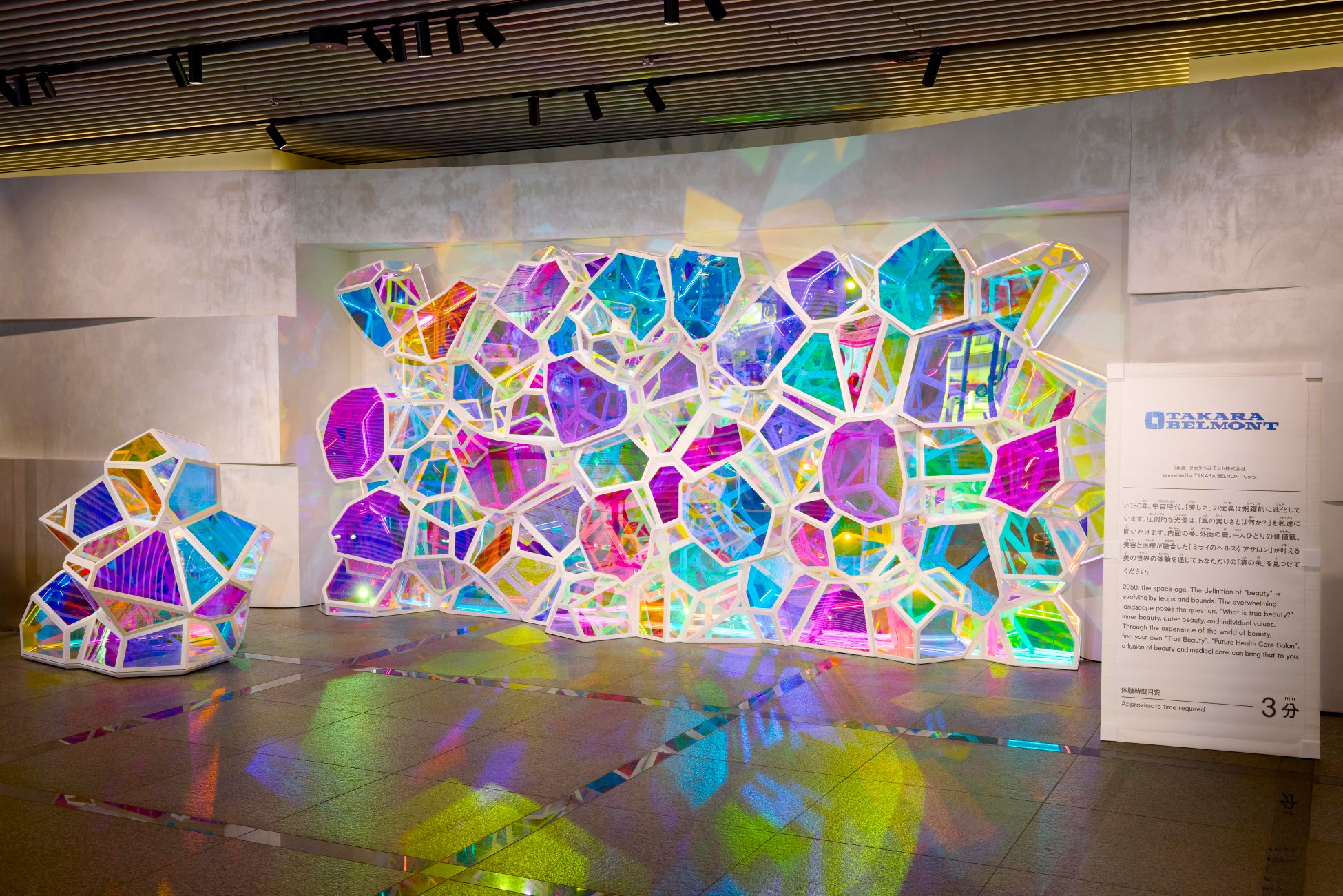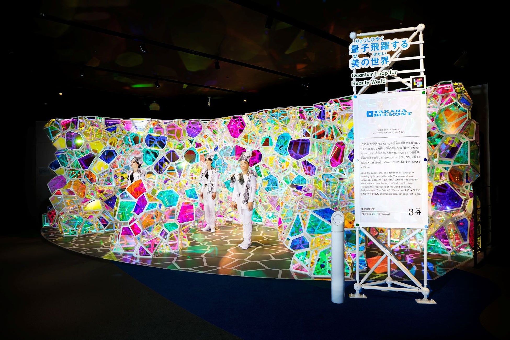 タカラベルモント株式会社(本社:大阪市中央区/代表取締役会長兼社長:吉川秀隆)は、大阪・関西万博にて出展した大阪ヘルスケアパビリオン「量子飛躍する美の世界」を大阪本社へ移設し、この度、完成したことをお知らせいたします。本取り組みは、「THINK CIRCULAR for SPACE AGE(宇宙時代の循環思考)」を基本理念に掲げて、持続可能な社会を目指そうと進めたものです。万博の感動と思想を一過性のものに終わらせず、次世代へ継承していくことを目的とした、当社サステナビリティアクションプランの第二弾です。完成を記念し、万博開幕1年記念となった4月13日(月)に報道関係者向けのお披露目会を実施したほか、2026年5月1日(金)~5月6日(水・休)には、入場無料で、一般のお客様にも公開いたします。