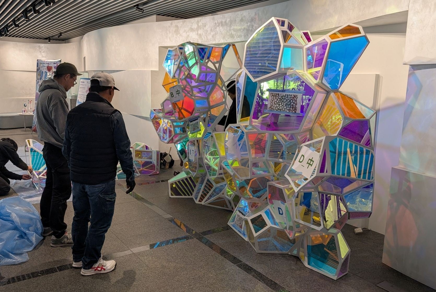 本移設作業は、出展ブース設計図をもとにタカラベルモントグループ従業員が自らの「手」で約45日間をかけて実施しました。昨年4月に設立されたサステナビリティ推進室のメンバーと、サロンやクリニックの空間デザイン、設計に携わるタカラスペースデザインのメンバーが中心に、延べ14名が参加。単なる移設にとどまらず、「自分たちの手で万博のレガシーを未来につなぐ」という想いのもと、本取り組みをスタートさせました。本移設作業をリードした当社サステナビリティ推進室・中山健太郎は、「万博会場での展示空間を、単に“再現する”のではなく、本社という日常空間の中で展示に込めた想いやレガシーをいかに”再構築する”かが最も難しいポイントだった。ぜひ多くの人に体験してほしい」と語りました。