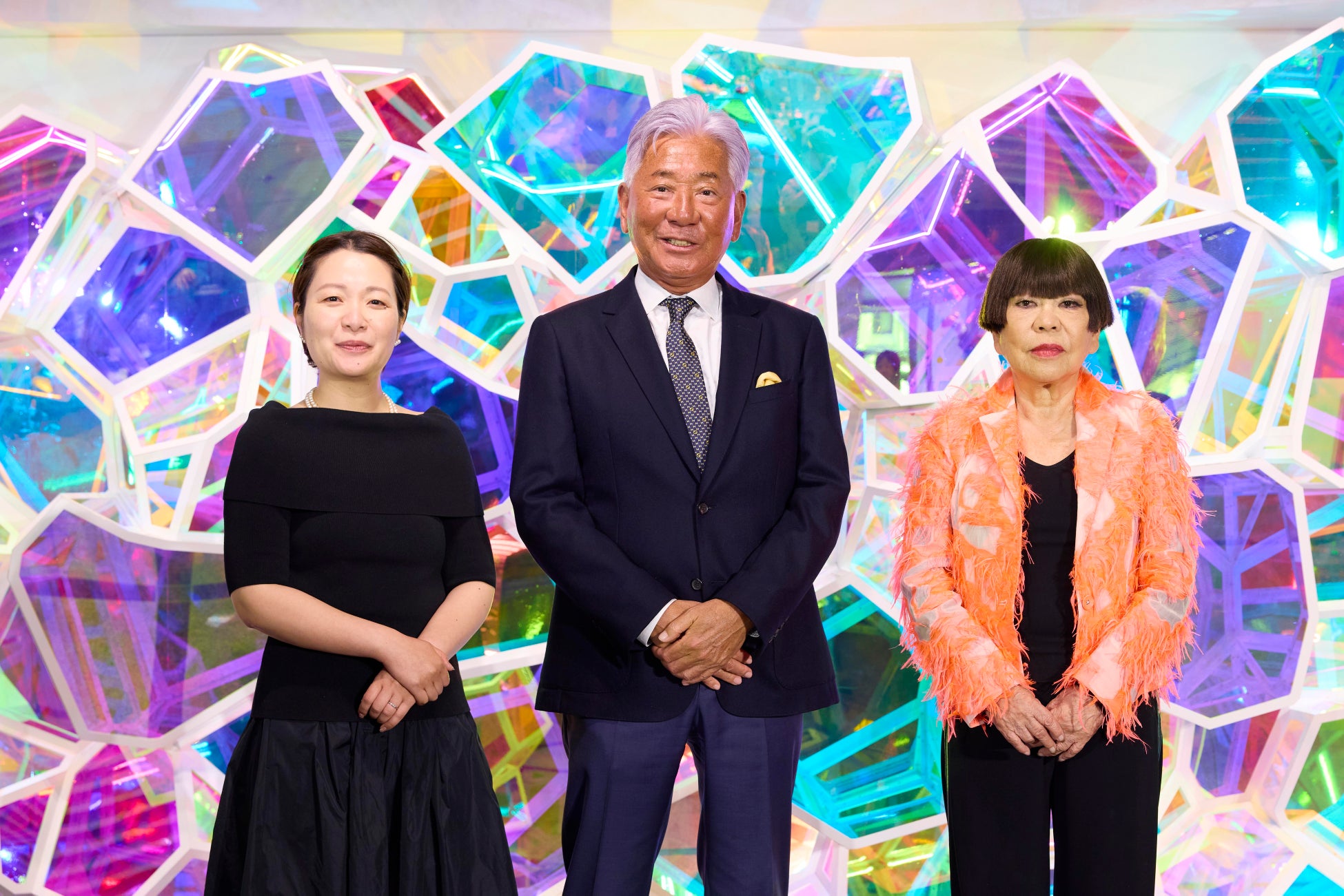 大阪・関西万博開幕記念1周年となった2026年4月13日(月)、タカラベルモント展示ブースの移設完成に伴う報道関係者向けのお披露目会を開催しました。当日は、出展ブースの設計・デザインを手がけた立命館大学准教授/ZERO GRAVITY DESIGN代表 山出美弥氏と、ユニフォームデザインを担当したデザイナー コシノジュンコ氏を迎え、万博を振り返るとともに、開幕1周年にあたり「万博が未来に残したもの」を語るトークショーを実施しました。