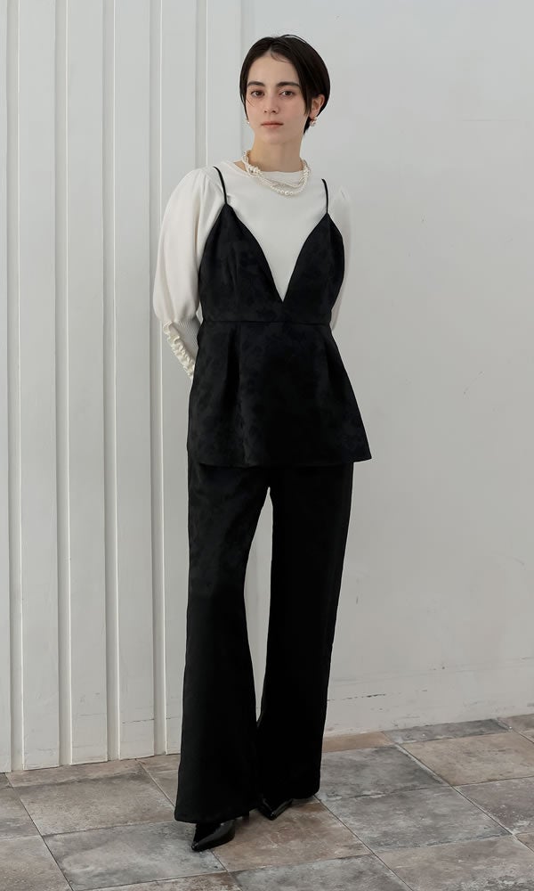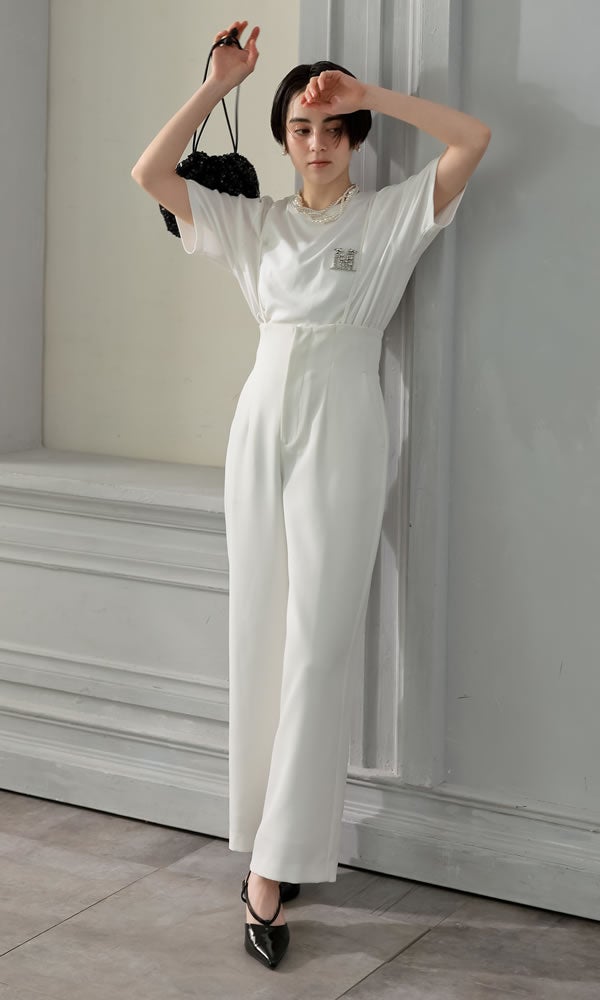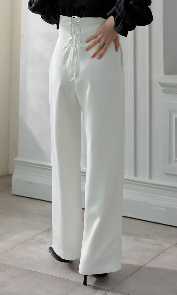 2WAYツイルサスペンダー付きバックレースアップハイウエストパンツ
