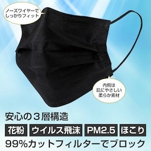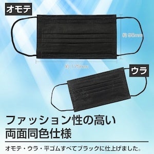 ●ファッション性の高い、両面同色(ブラック)仕様の不織布マスクです。