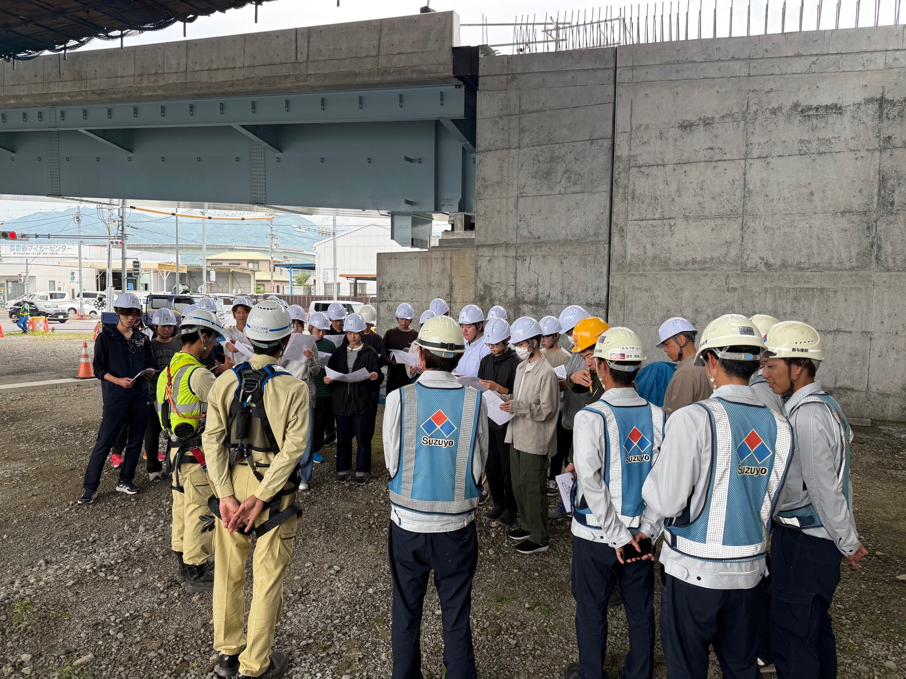 鈴与建設株式会社(本社:静岡県静岡市清水区、代表取締役社長:櫻井重英)は、2025年7月2日、学校法人静岡理工科大学土木工学科の1年生24名を対象に、建設現場での体験学習を実施しました。