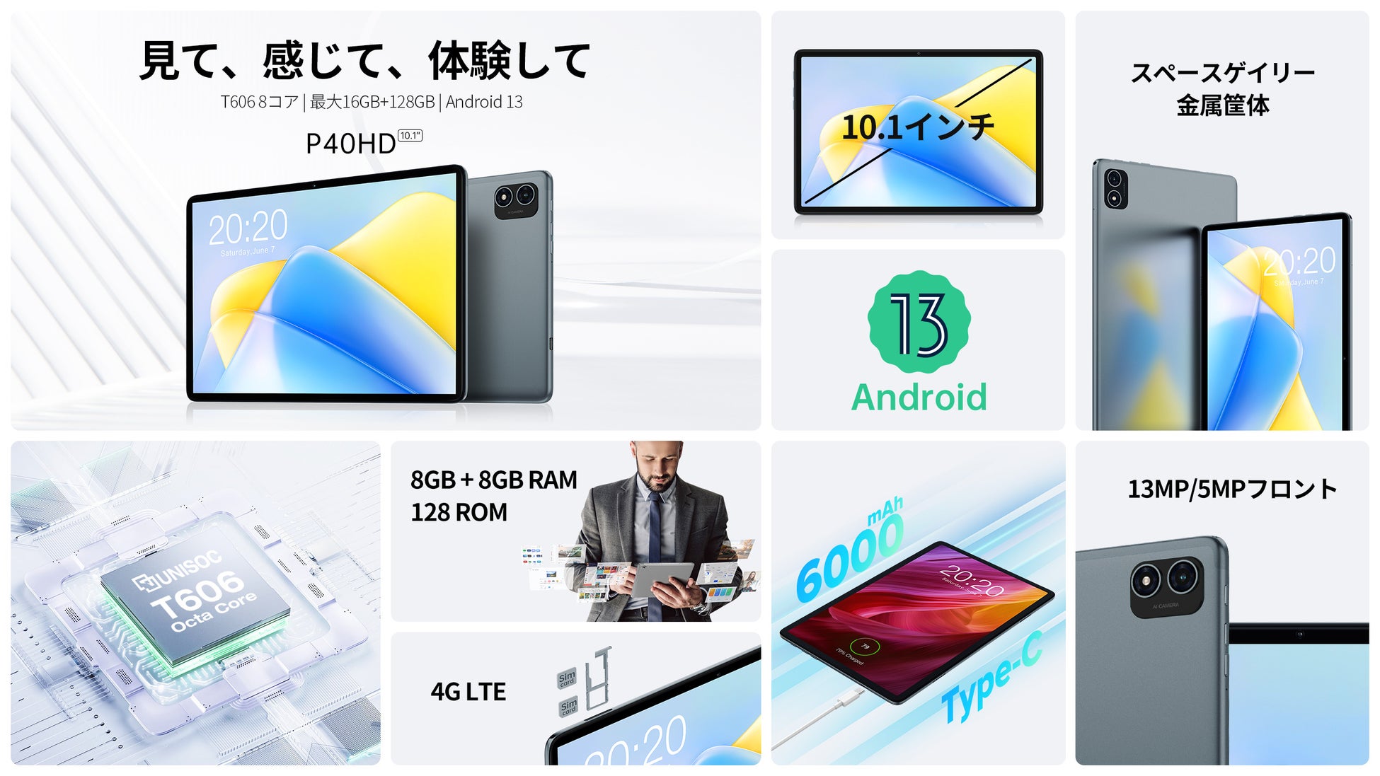 P40HDはTDD+FDDのデュアルモデル4G LTEネットワークアクセスに対応し、VoLTEによるネットワークと通話の同時利用が可能です。デュアルSIMデュアルスタンバイ機能により、仕事とプライベートの切り替えが簡単にできます。802.11ac仕様のデュアルバンドWiFiネットワークに対応し、ネットワークの世界でスッキリ楽しむことができます。Bluetooth 5.0の低消費電力転送により、タブレットの可能性を広げます。