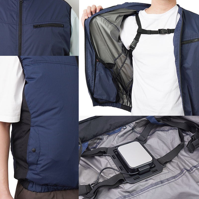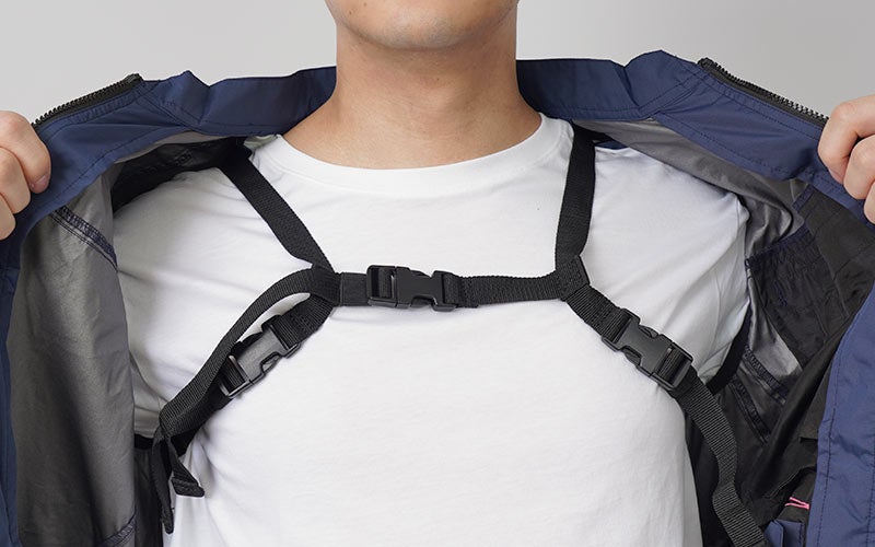 さらに、腰元の左右それぞれに搭載されたファンで外気を取り込み、服の内部を風が循環。