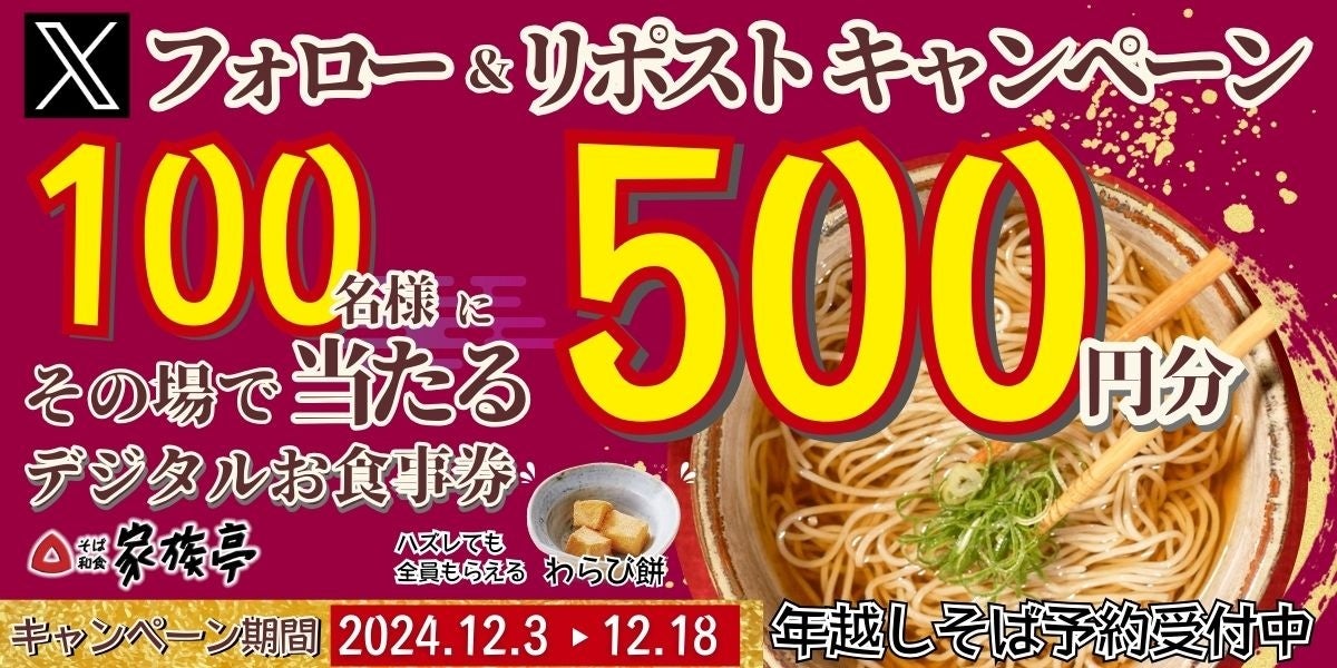年越しそば販売記念!家族亭公式Xフォロー&リポストキャンペーンも同時開催!