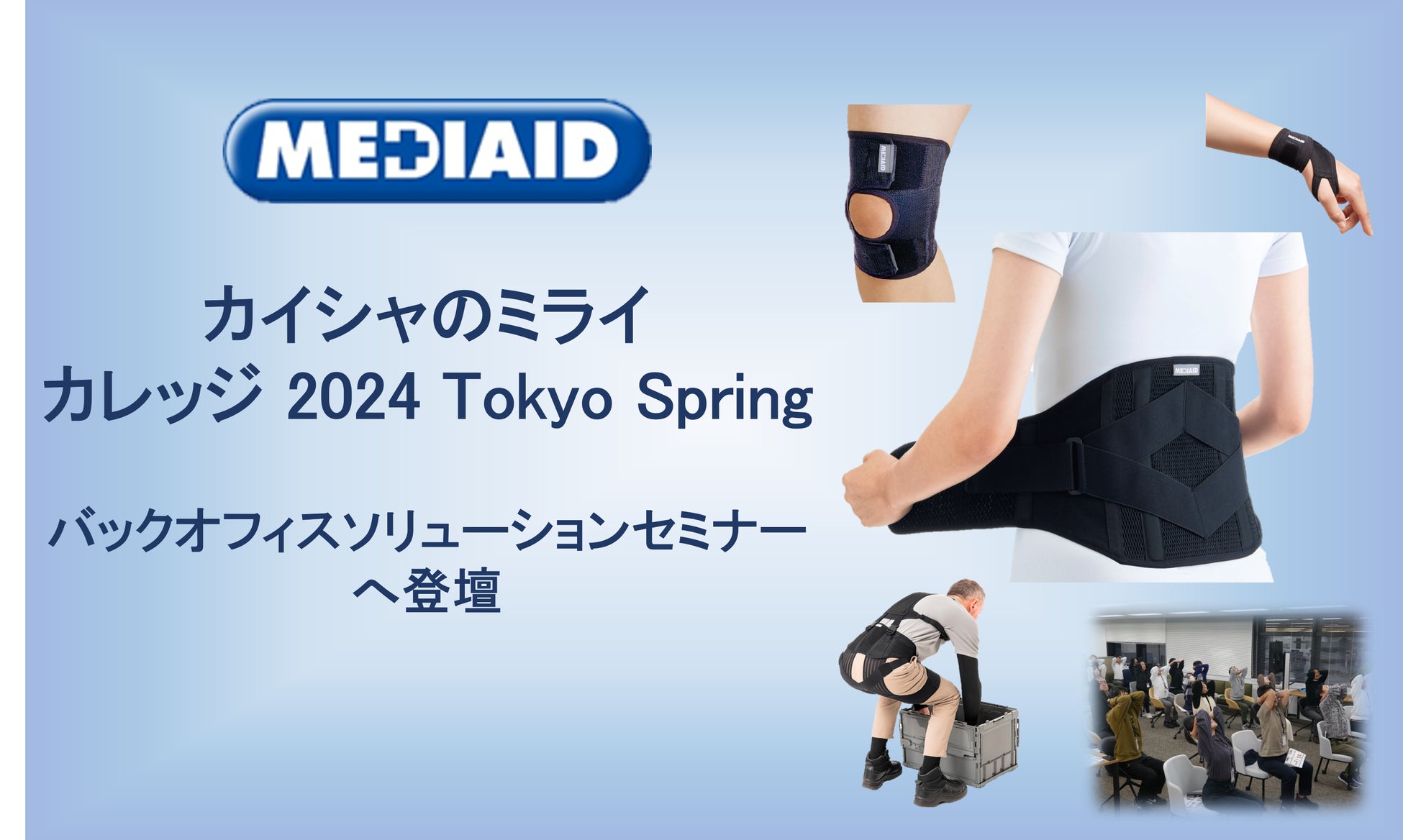 日本生まれのサポーター専業ブランド「MEDIAID(メディエイド)」を展開する、日本シグマックス株式会社(本社:東京都新宿区、代表取締役社長:鈴木洋輔)は、5月9日(木)に東京ビッグサイトで開催される「カイシャのミライ カレッジ 2024 Tokyo Spring」のバックオフィスソリューションセミナーに登壇。