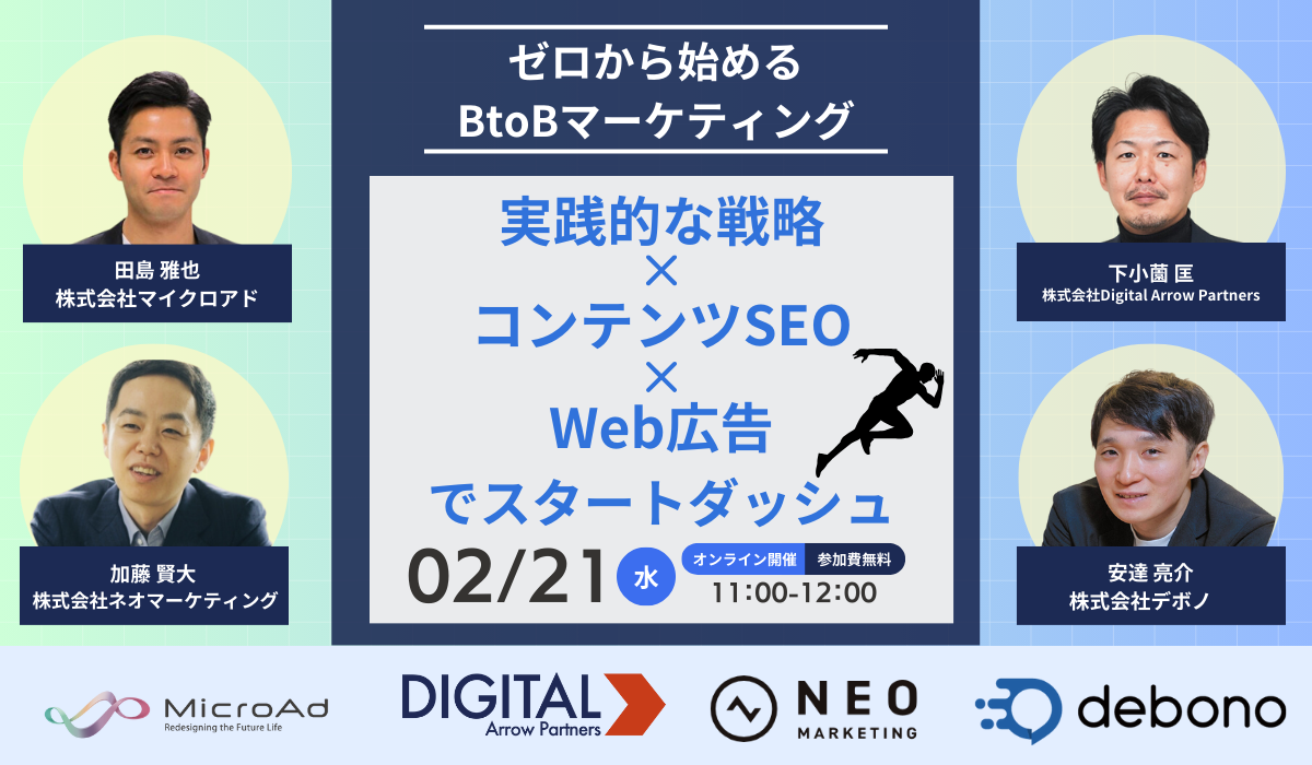 無料共催ウェビナーのお知らせ「ゼロから始めるBtoBマーケティング実践的な戦略×コンテンツSEO×広告でスタートダッシュ」