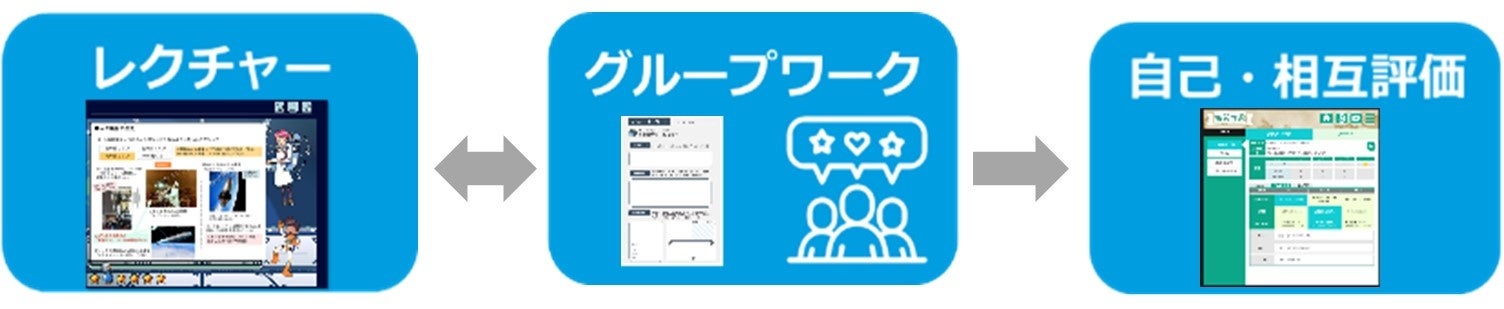 グループワークでは、思考やアイデアをスムーズに発展・整理させるためのツールを用意して、調べ学習やディスカッションなどを進められるようになっています。このプロセスを通じて、グループワークの展開方法を学ぶことができます。